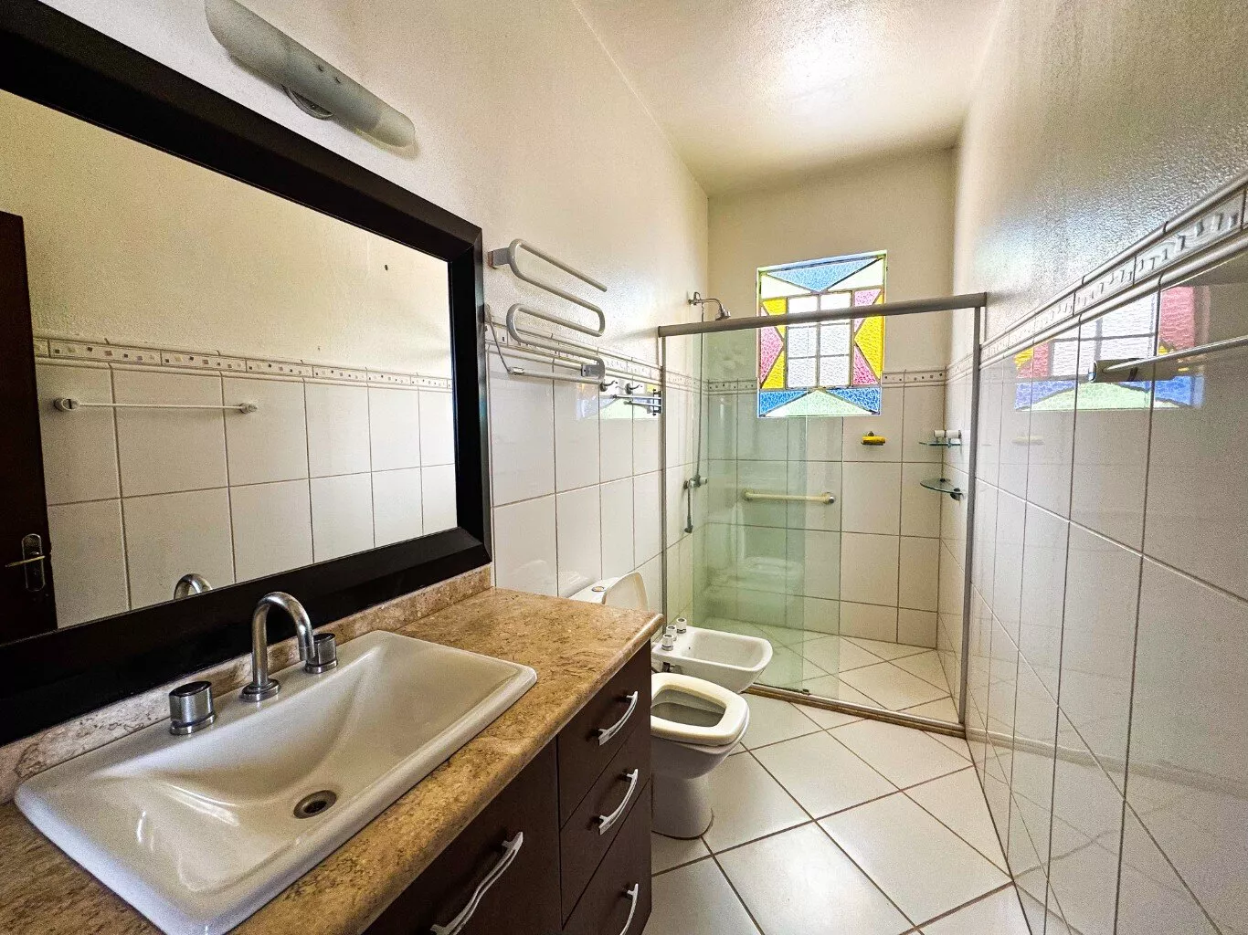 Com 04 dormitórios, sendo 01 suíte, sala de estar ampla, sala de jantar, cozinha, banheiro social, despensa, lavanderia, garagem fechada para 01 carro e estacionamento com capacidade para aprox. 10 carros, Quiosque rústico com banheiro e churrasqueira;