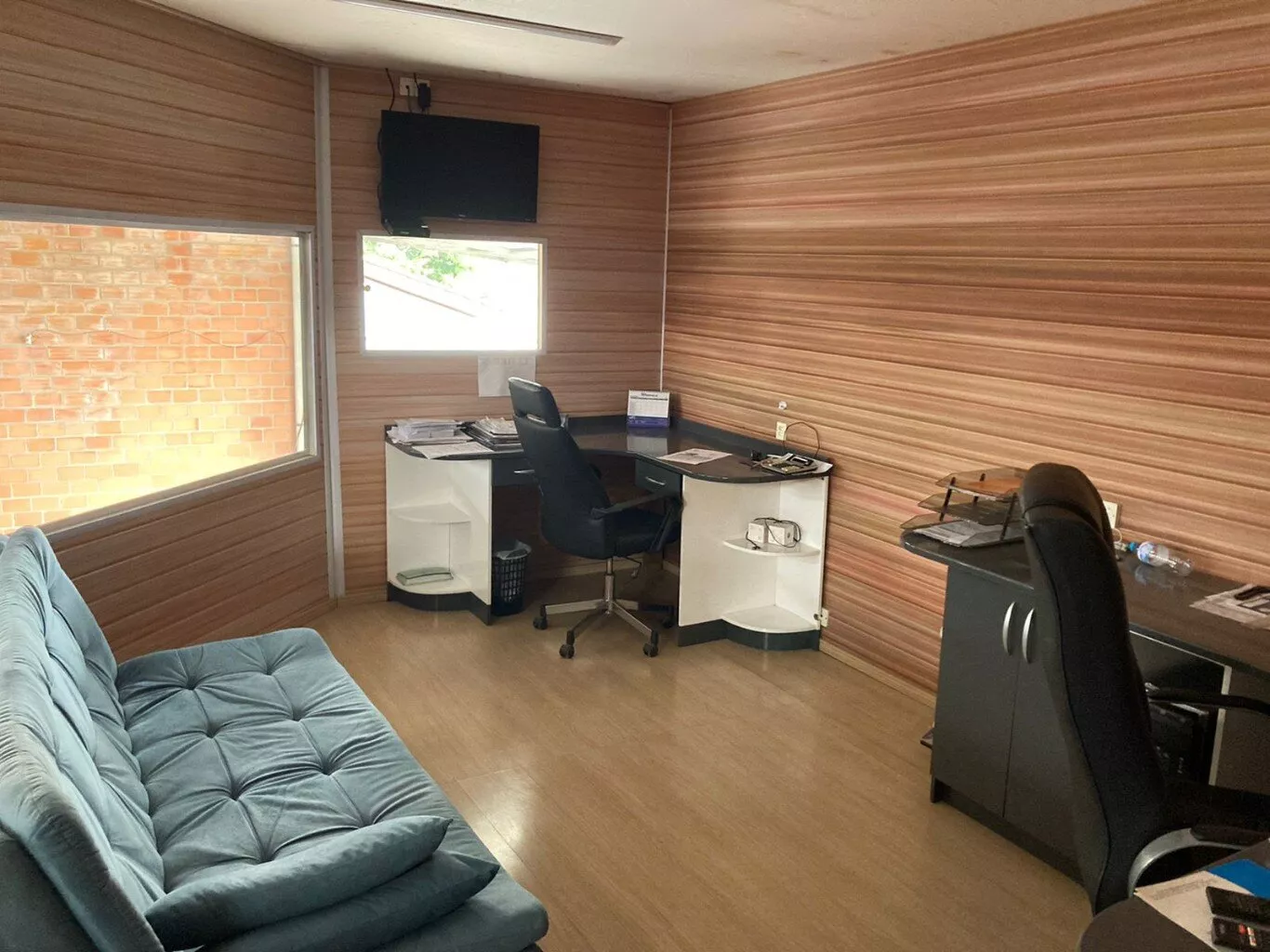 Dois escritórios montados com 20,00m² cada com banheiro com porcelanato, móveis planejados, com sofá, televisão, 03 computadores, impressora profissional, 02 ar condicionados;