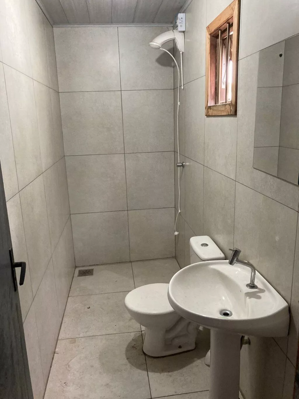 Pavilhão com a área de 315,00m², (15,00X21,00m), 6,5m de pé direito; telhas em aluzinco, calhas de chuva em alumínio, janelas basculantes em policarbonato piso polido com 18,00cm com malha de aço, preparado para suportar carga pesada, portão com 05,00m de largura de contrapeso com movimentador eletrônico, com sistema de câmera com monitoramento Intelbrás com DVR;