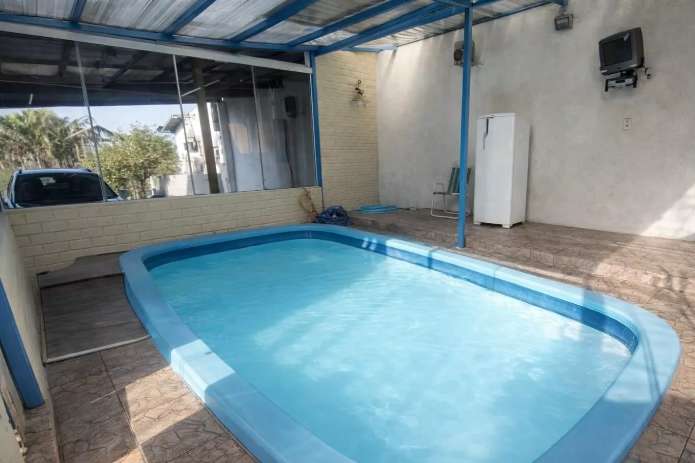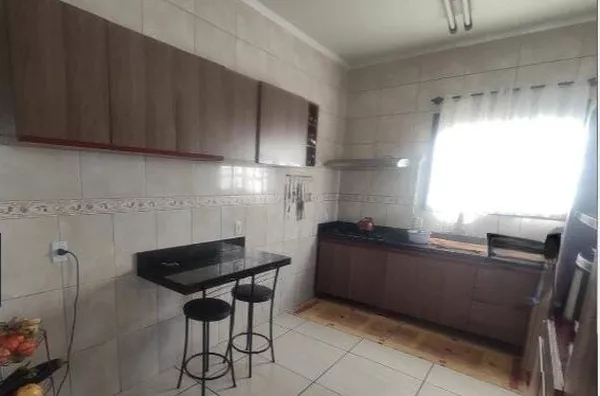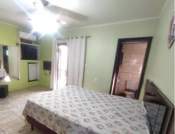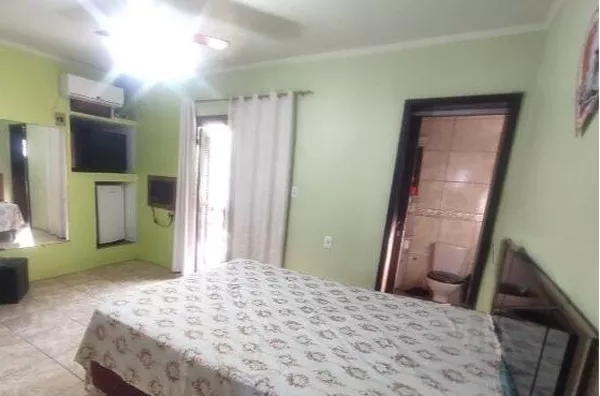 Com 04 dormitórios (sendo 01 suíte), 02 banheiros sociais, sala de estar, cozinha, lavanderia, área de lazer com churrasqueira, fogão campeiro, mesa com 08 lugares, garagem coberta para 05 carros e piscina coberta (aquecida);