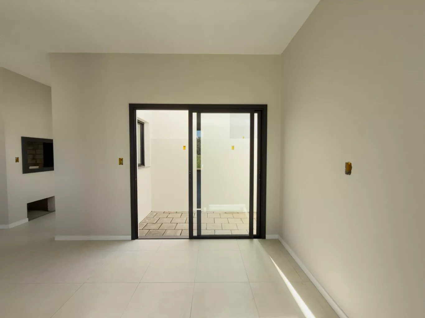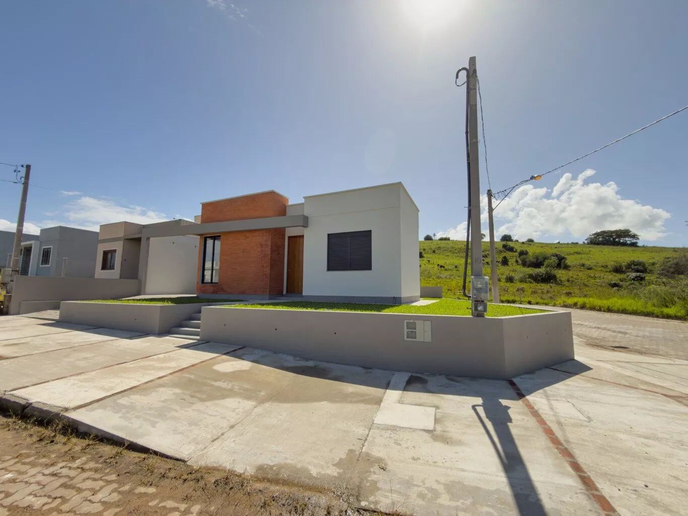 Casa de alvenaria nova, medindo 75,48m², com 02 dormitórios, sendo 01 suíte, sala de estar ampla, sala de jantar, cozinha com churrasqueira, banheiro social, lavanderia e vaga para 01 carro. Piso com porcelanato, teto em laje e aberturas em aluminio premium. Imóvel pronto para financiar.