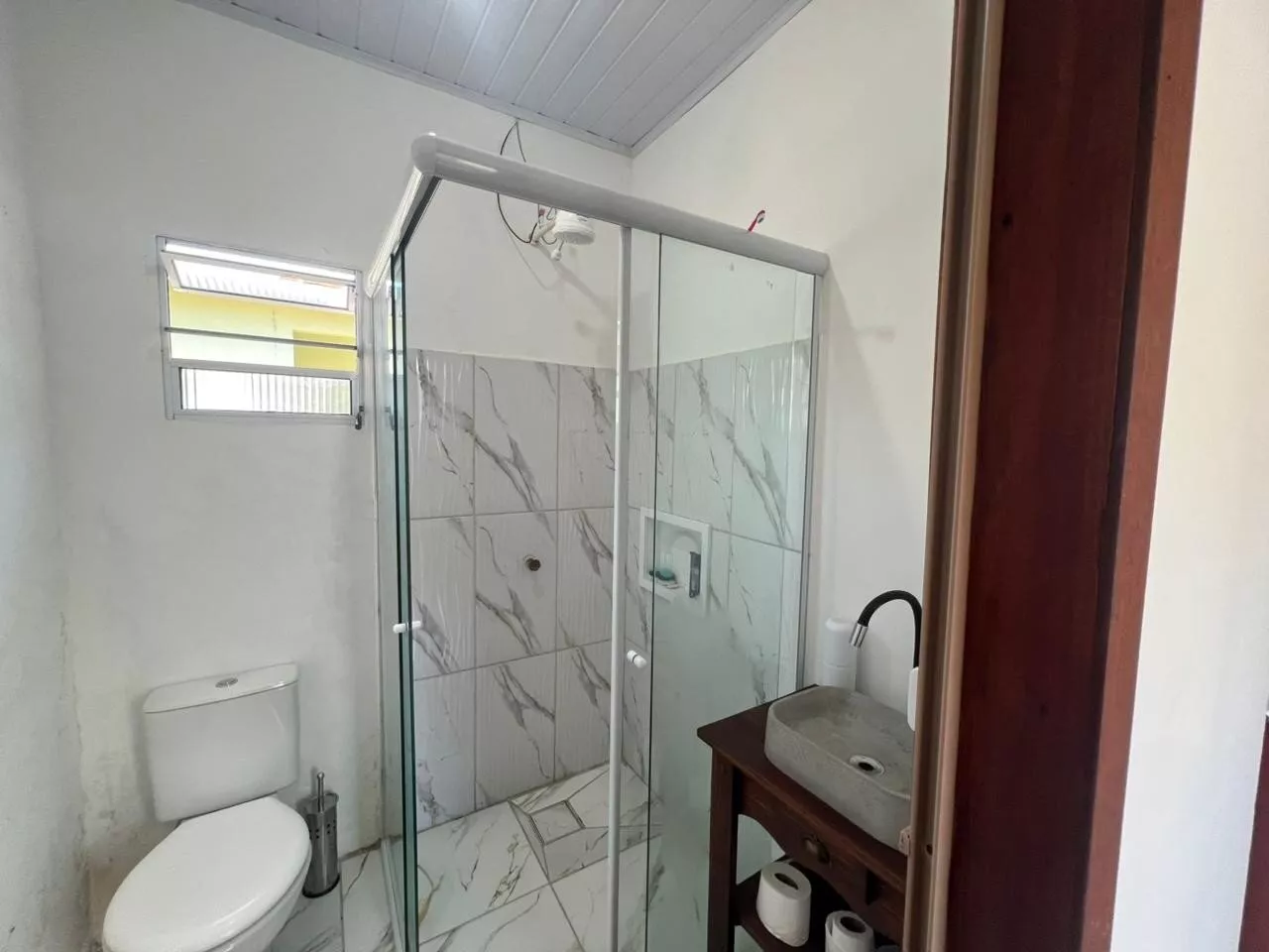 Piso porcelanato e forro PVC.