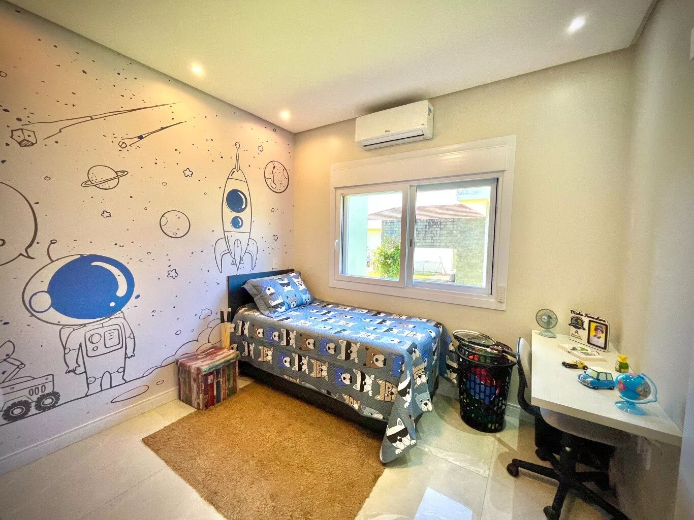 Possui 04 dormitórios, sendo uma suíte c/ closet, sala com 02 ambientes, pé direito duplo e lareira, cozinha planejada, com fogão campeiro e forno de pizza, móveis planejados, 03 banheiros c/ ótimo acabamento, área de serviço e garagem para 02 carros;