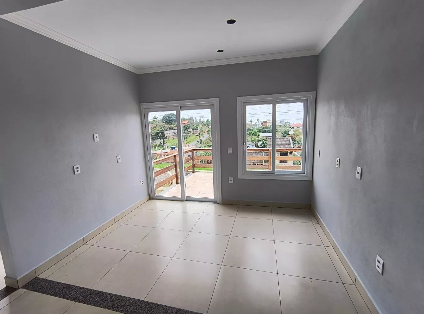Aberturas em PVC e piso porcelanato.