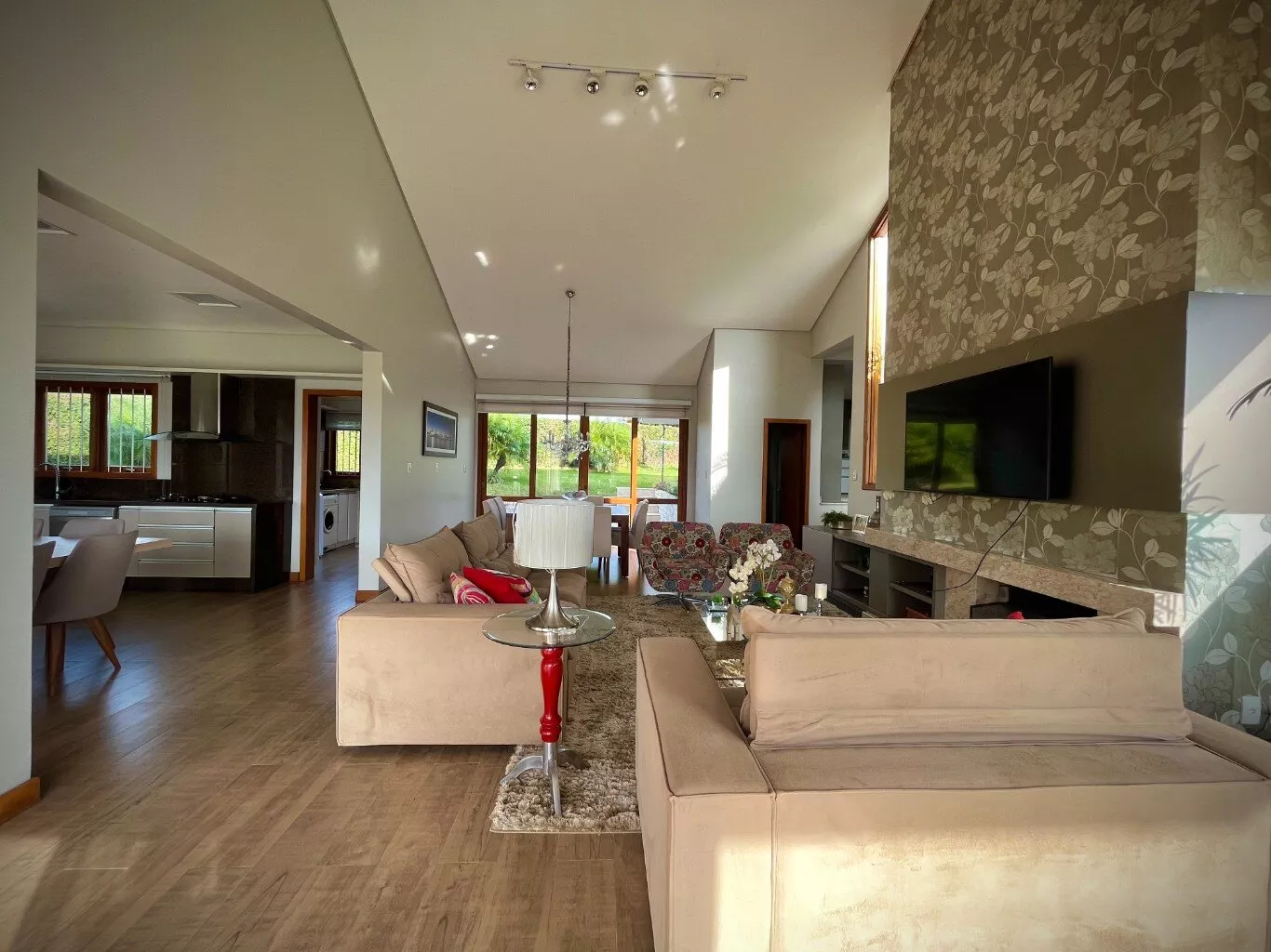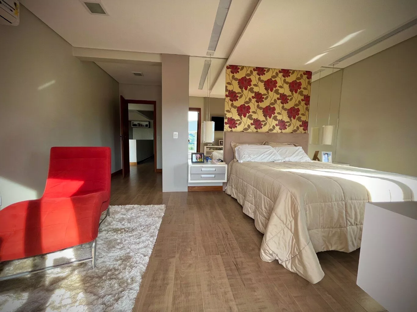 Distribuídos em 03 dormitórios, sendo uma suíte com closet e hidro, total de 03 banheiros de fino acabamento, sala e cozinha em conceito aberto formando um amplo ambiente com lareira e sacada integrada com linda vista panorâmica, churrasqueira;