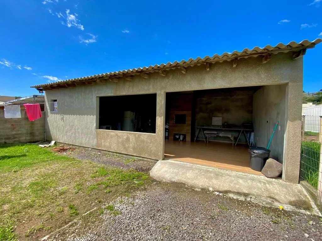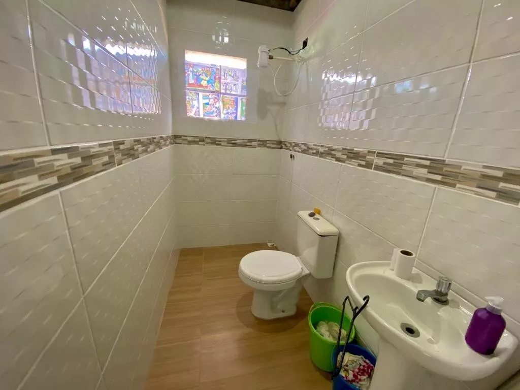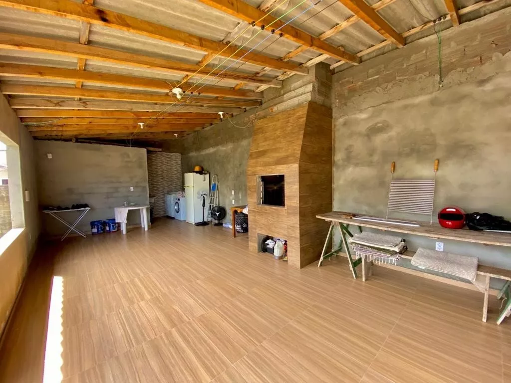 Possui garagem com área de 45,00m², com 01 banheiro, vaga para 01 carro e espaço para festas, com churrasqueira (falta pintura e acabamentos do forro);