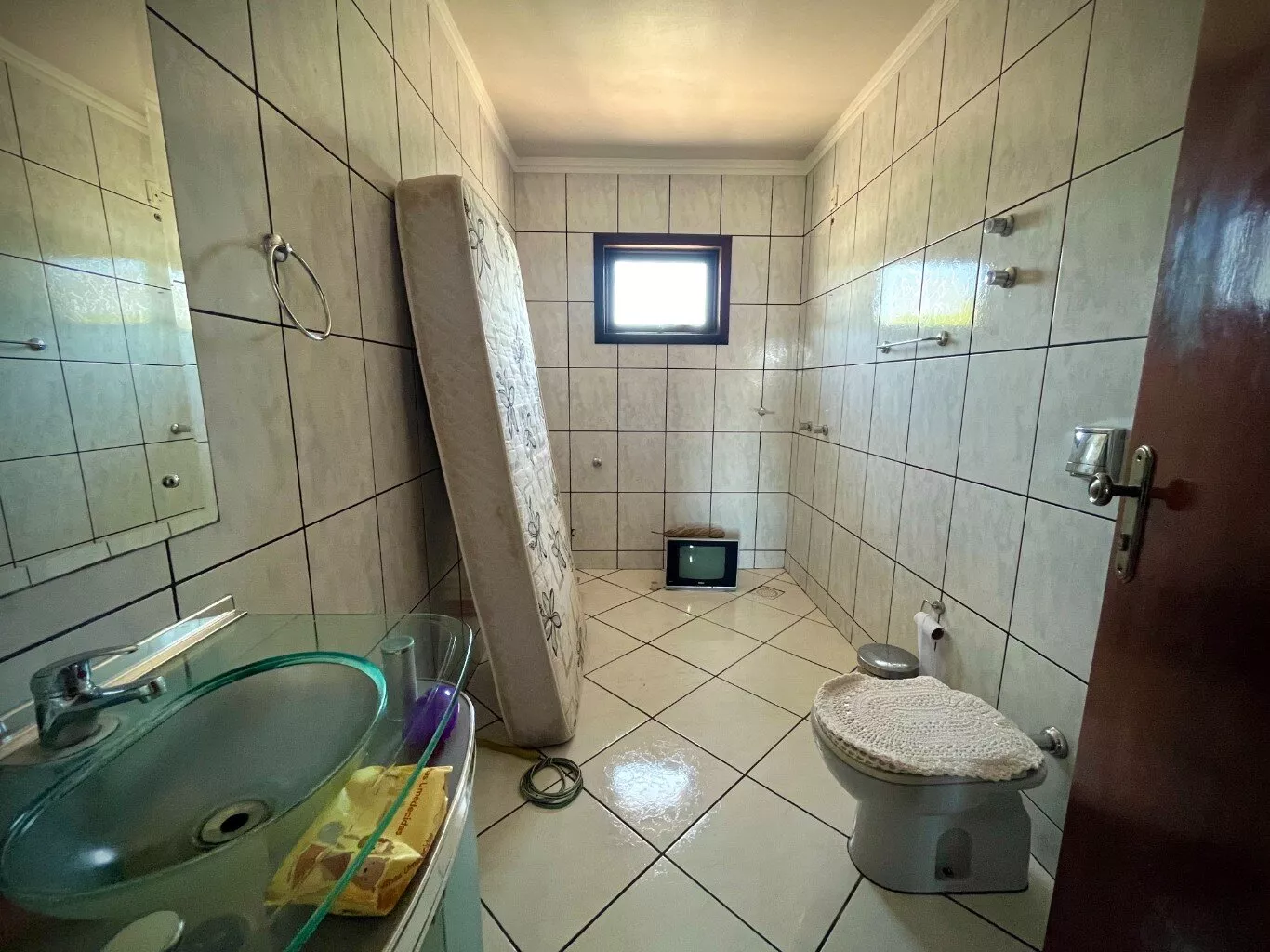 Espera para instalação de aquecedor a gás na cozinha e banheiros, aberturas de madeira de itaúba com ótima conservação;