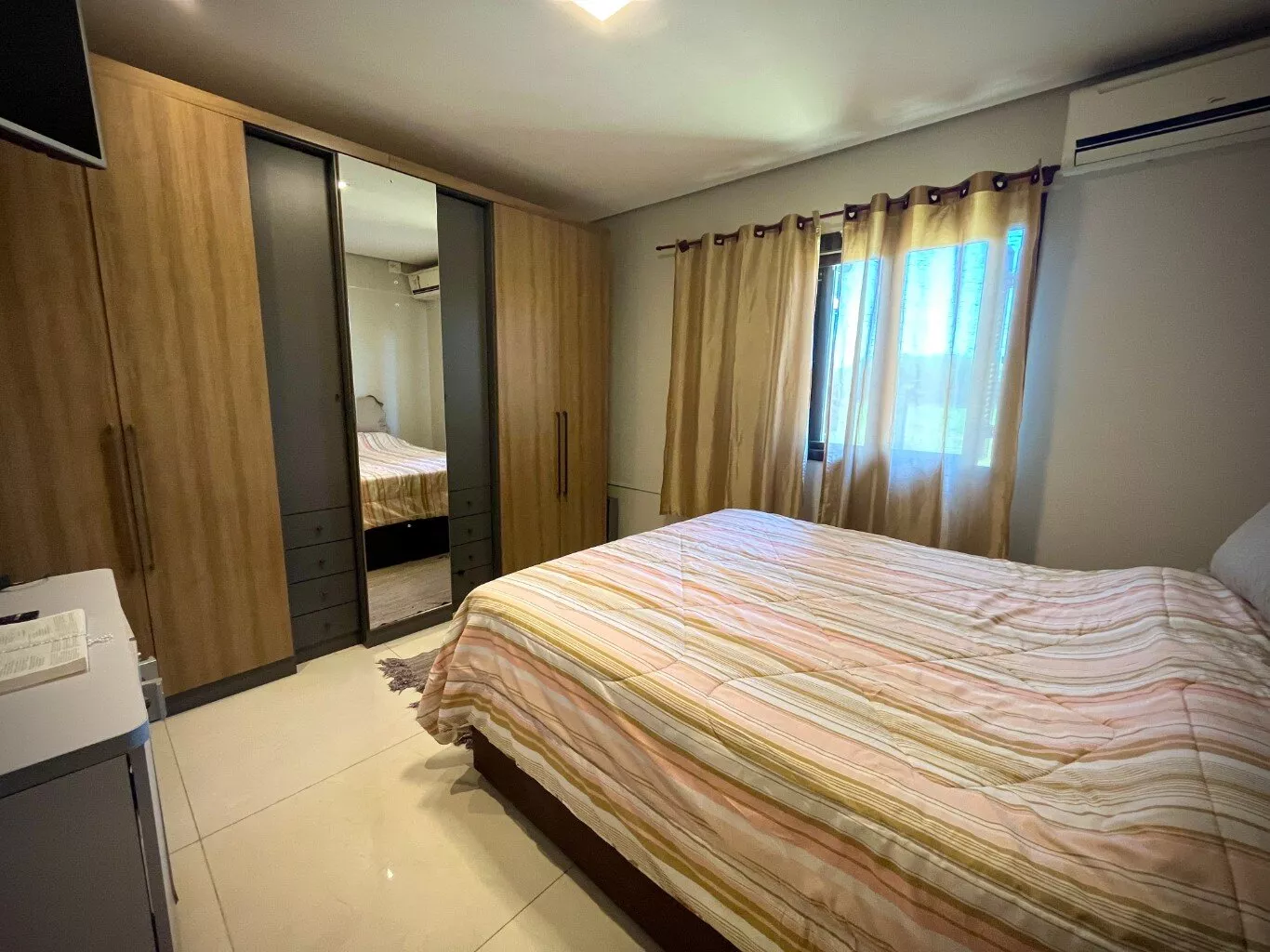 Aberturas em madeira de itaúba, pisos em porcelanato;