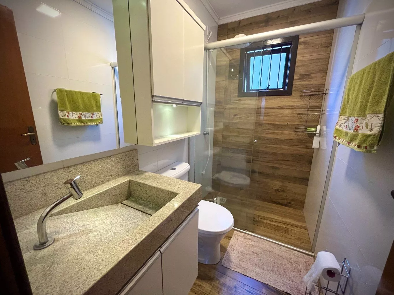Possui móveis sob medida na sala de estar, cozinha e nos banheiros (conforme imagens);