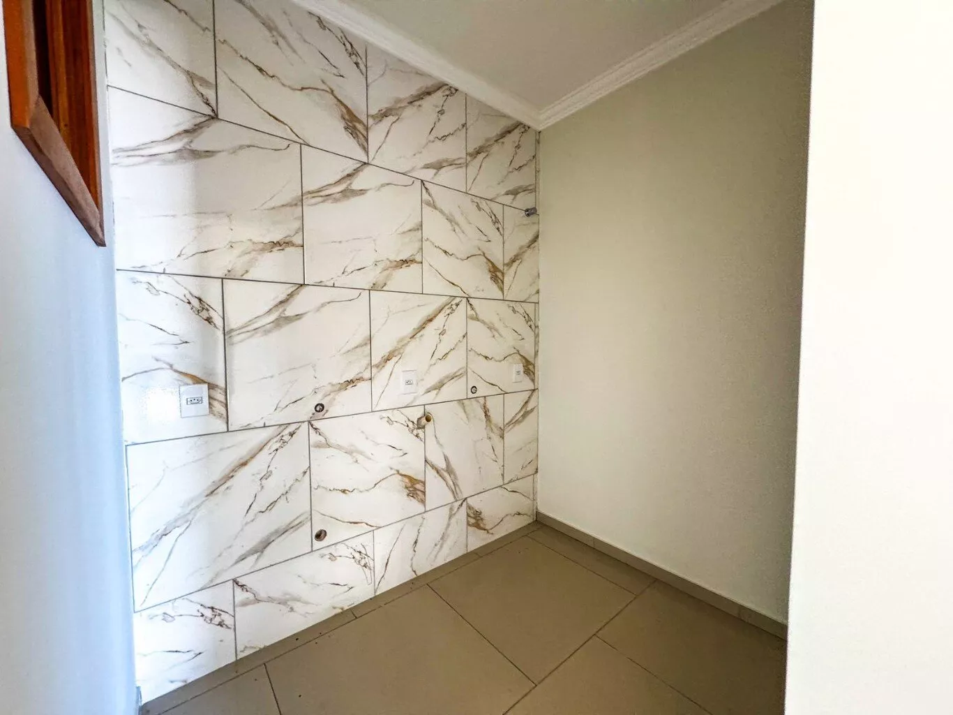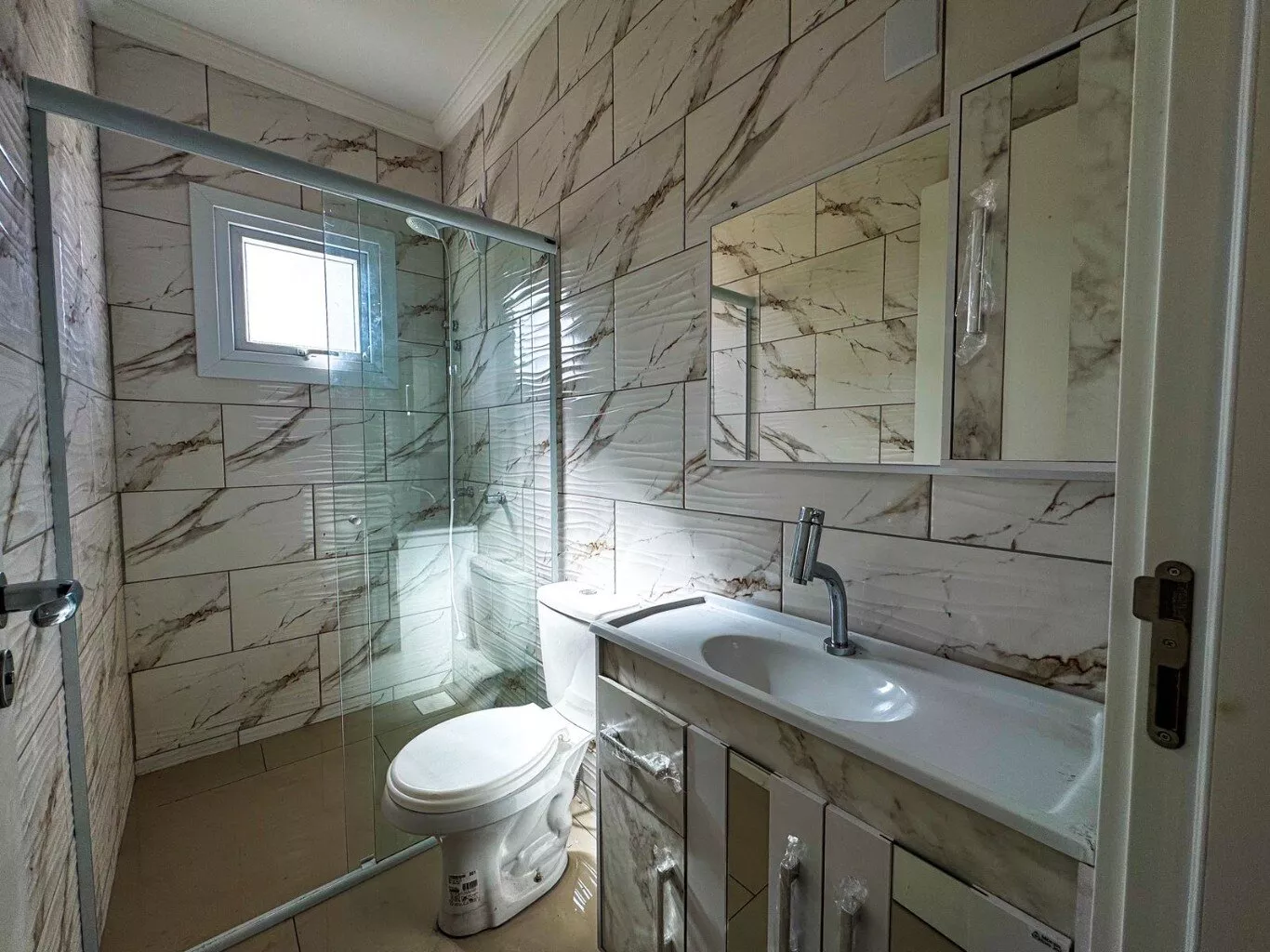 Pisos em porcelanato, espera para ar condicionado em todos os ambientes, garagem para dois carros em posição lateral, porta de garagem automatizada com cortina em alumínio com PVC, aberturas em alumínio e PVC;