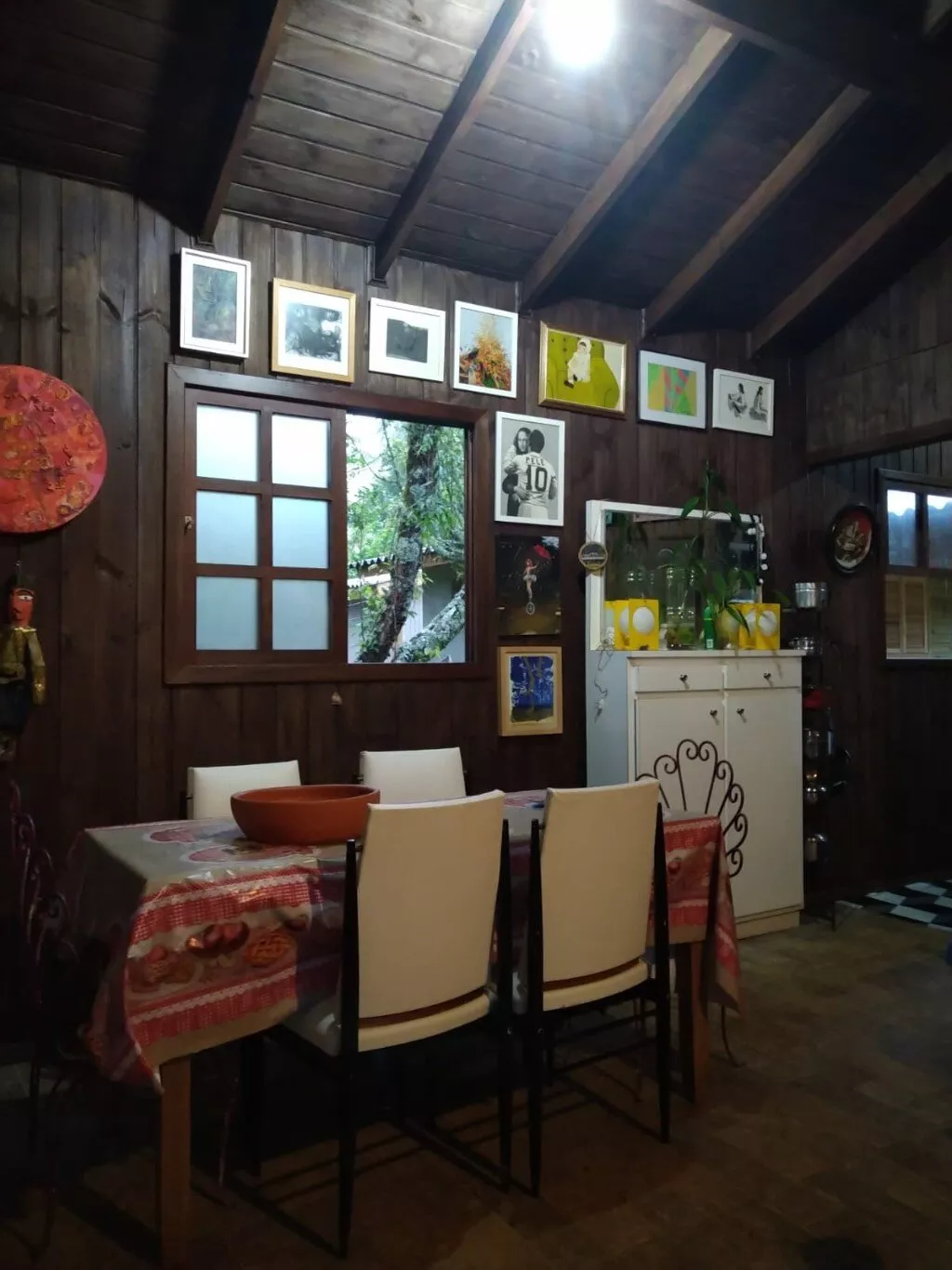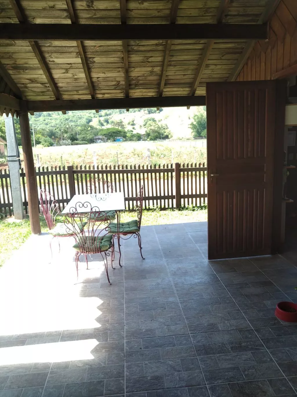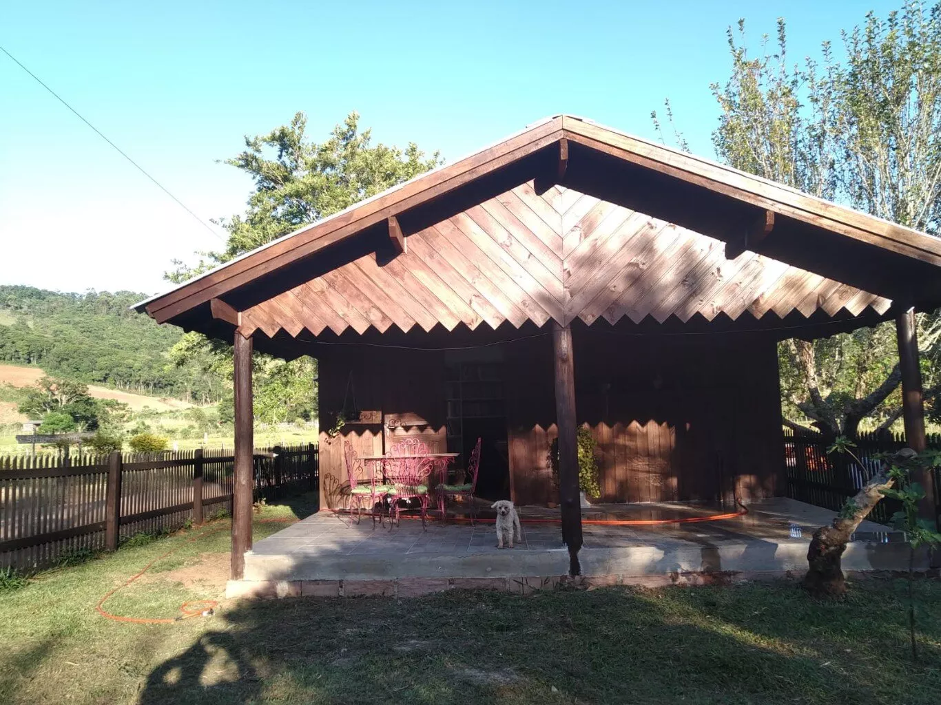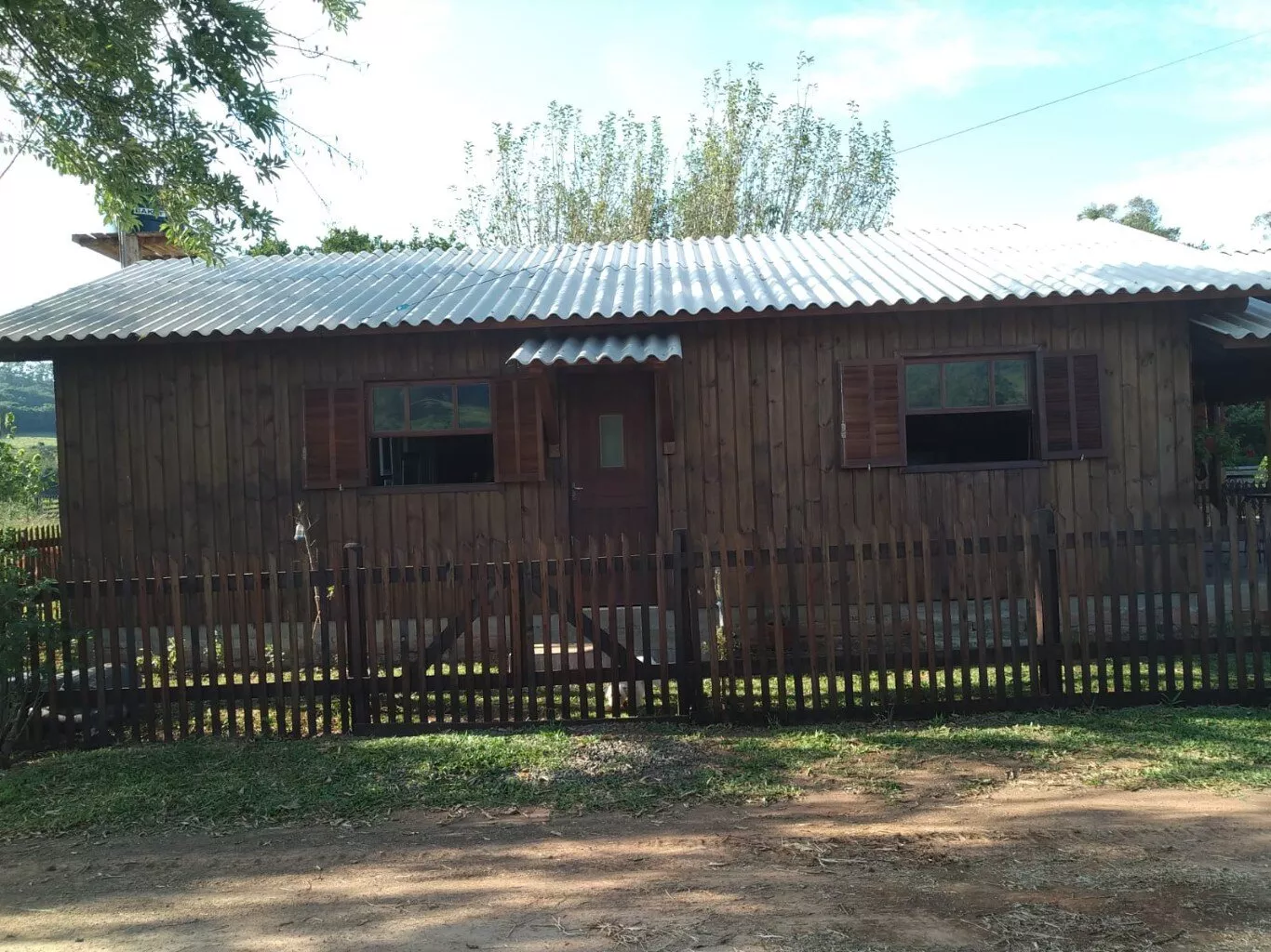Possui um chalé de madeira estilo rústico medindo aprox. 75,00m², com dois dormitórios, sendo um mobiliado, ampla sala de estar com lareira, cozinha e um banheiro.