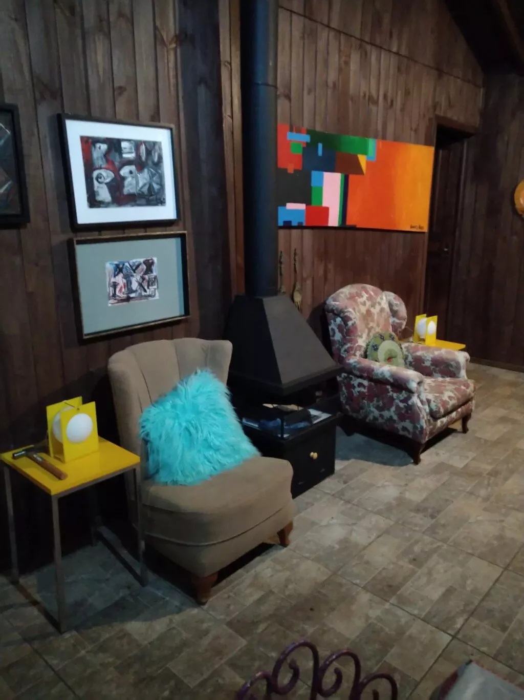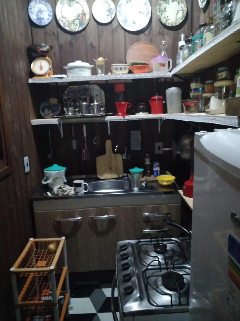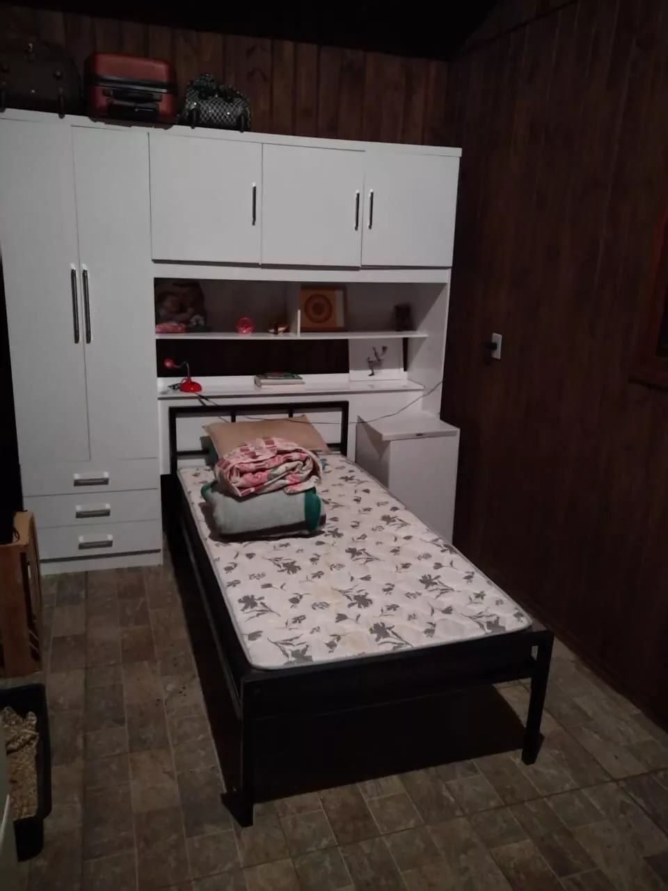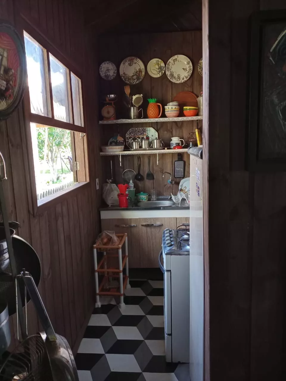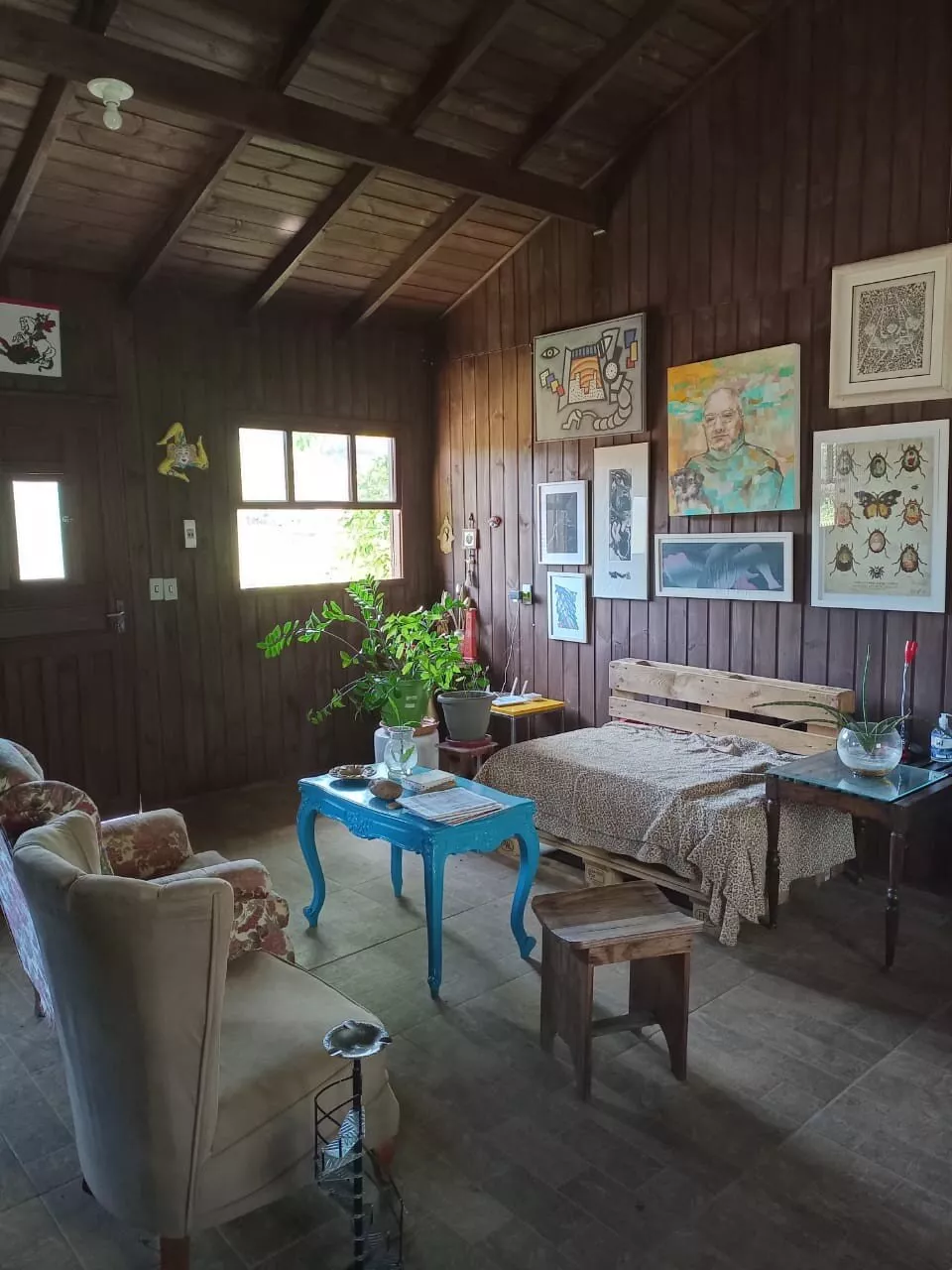 Possui um chalé de madeira estilo rústico medindo aprox. 75,00m², com dois dormitórios, sendo um mobiliado, ampla sala de estar com lareira, cozinha e um banheiro.