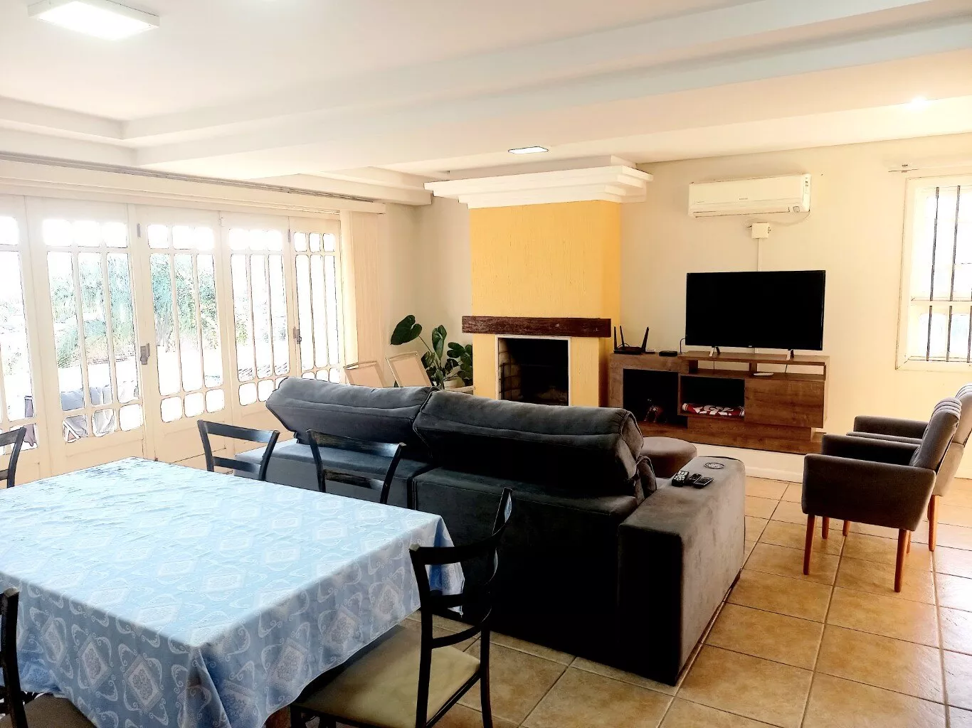Com 05 dormitórios, sendo 01 suíte com closet e banheira, sala de estar ampla, sala de jantar, cozinha, área de serviço, banheiro social, lavabo, garagem com churrasqueira e banheiro auxiliar e piscina;