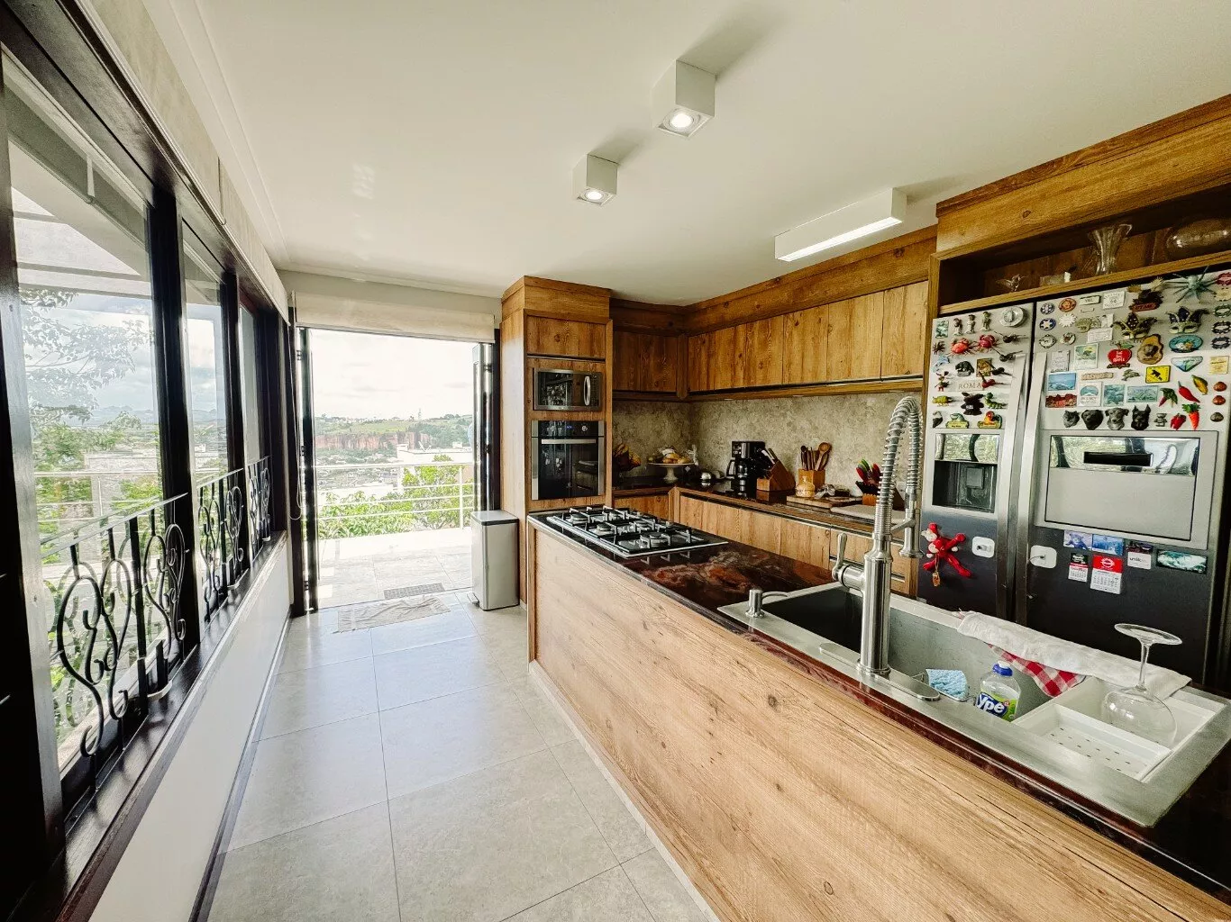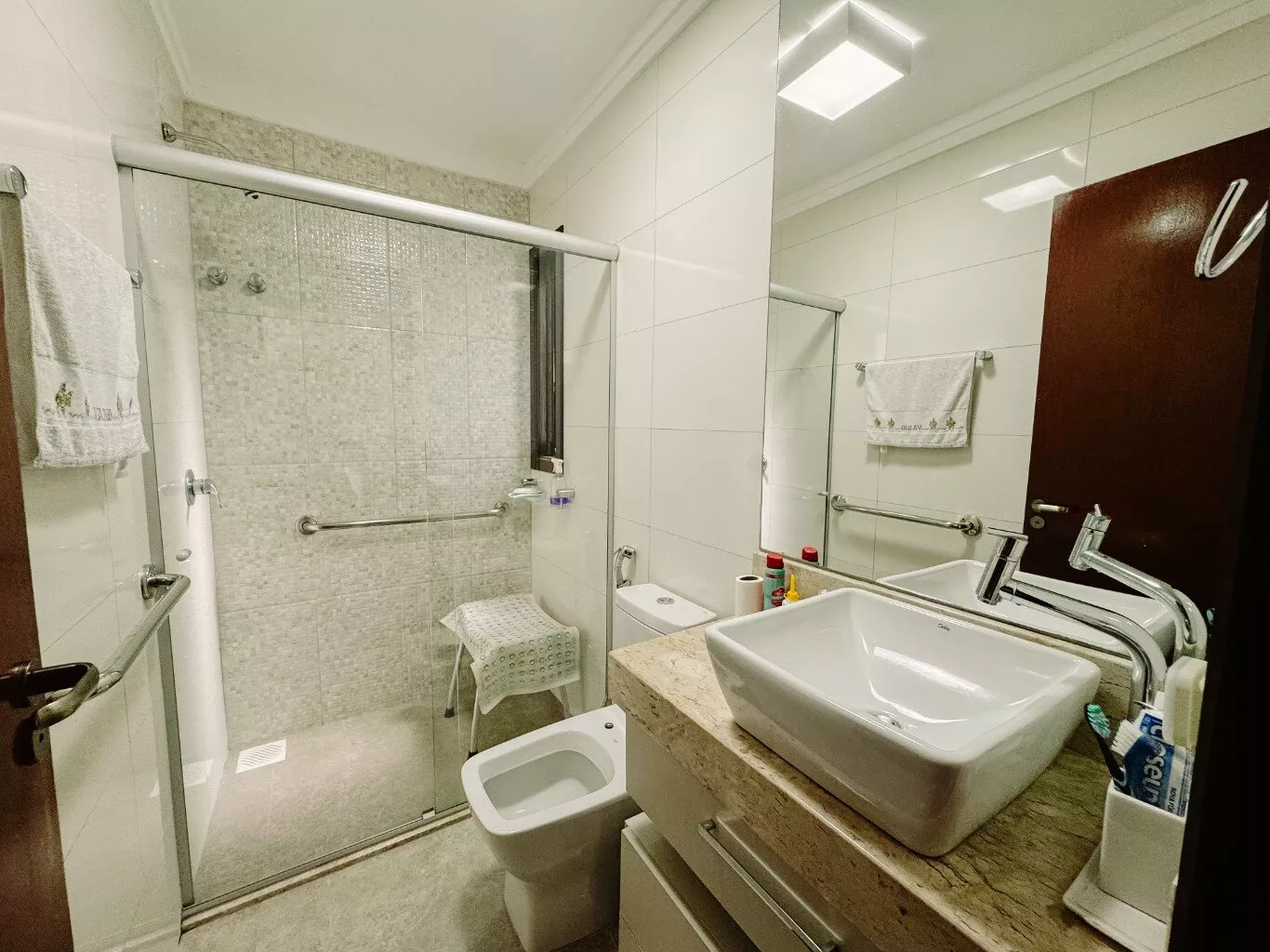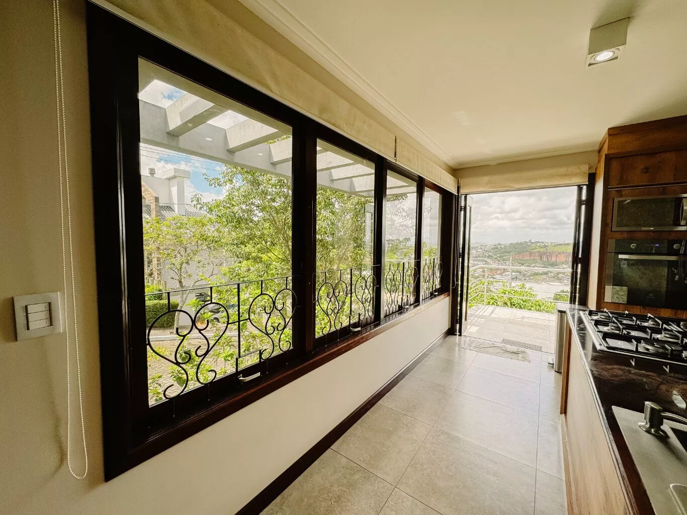 Com 03 suítes, sendo 01 com closet e banheira de hidromassagem, sala de estar, sala de jantar, cozinha completa, lavabo, sala de TV com sacada e linda vista panorâmica; garagem para 02 carros, com banheiro auxiliar.