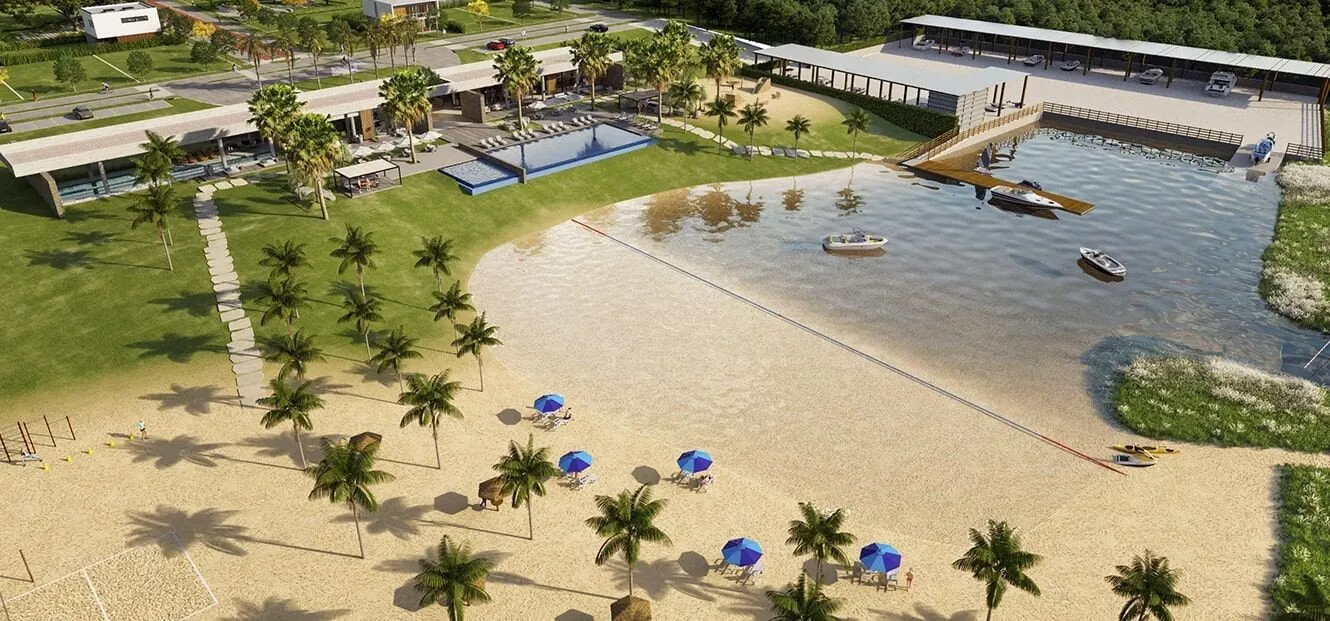 Condomínio fechado de alto padrão, com toda privacidade e segurança que você procura à beira da Lagoa do Peixoto, próximo ao Morro da Borússia e à BR-101.