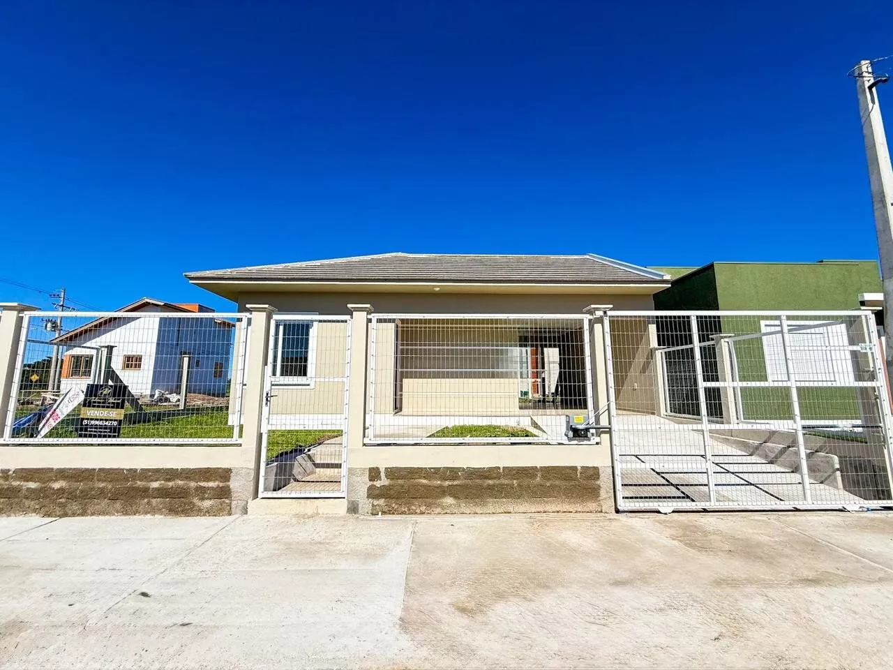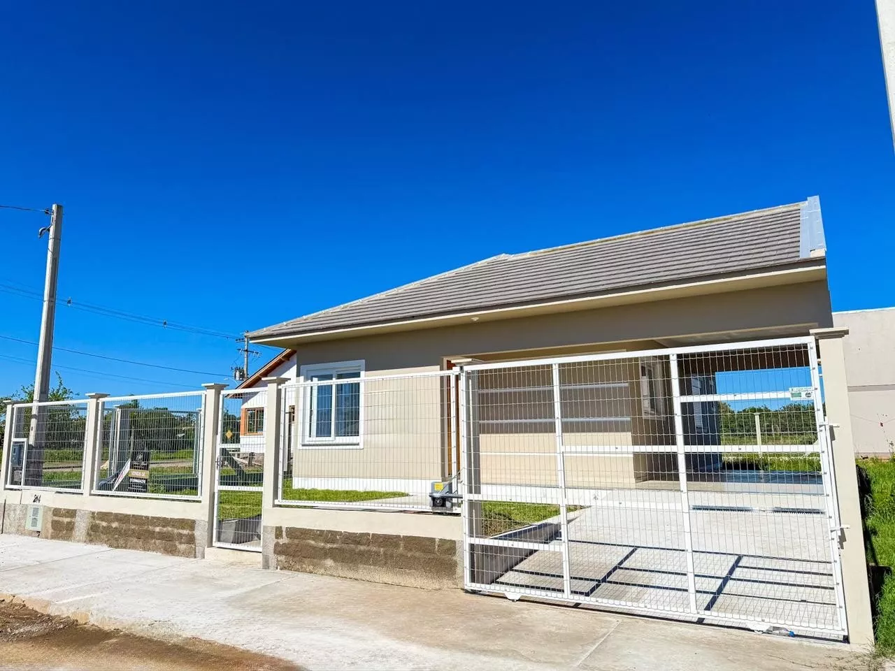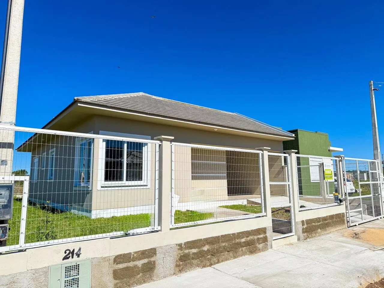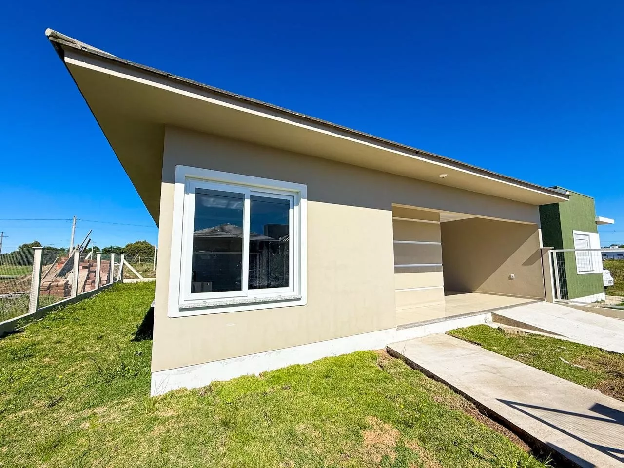 Com 2 dormitórios sendo 1 suíte, sala, cozinha, banheiro social, lavanderia, piso porcelanato, aberturas em Pvc, pátio fechado e abrigo para carro.
