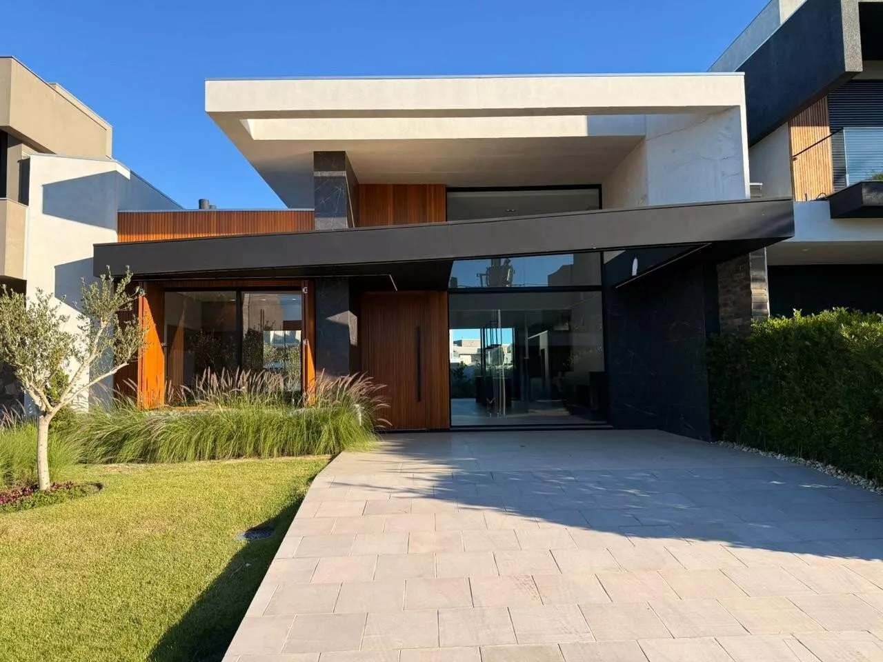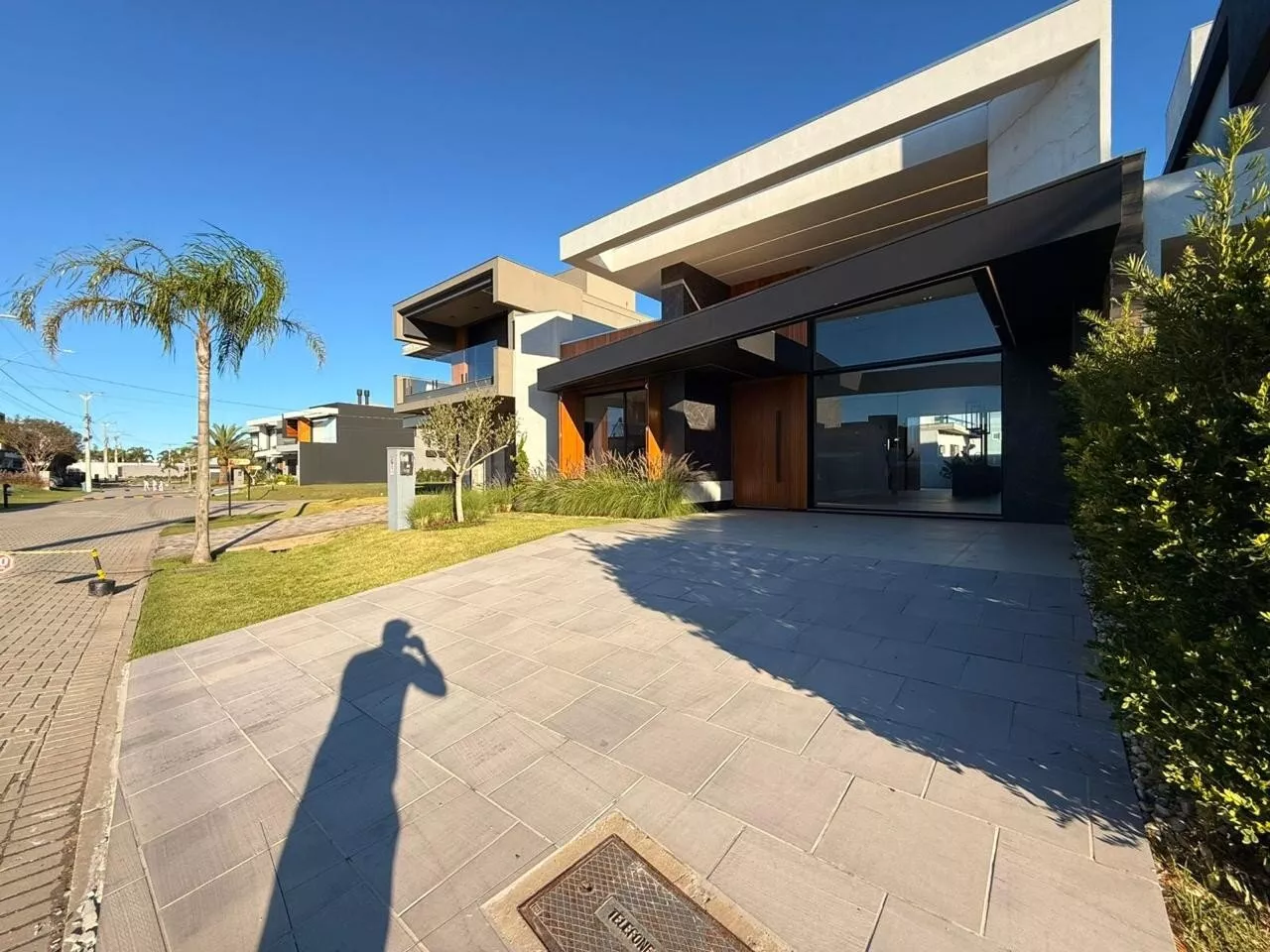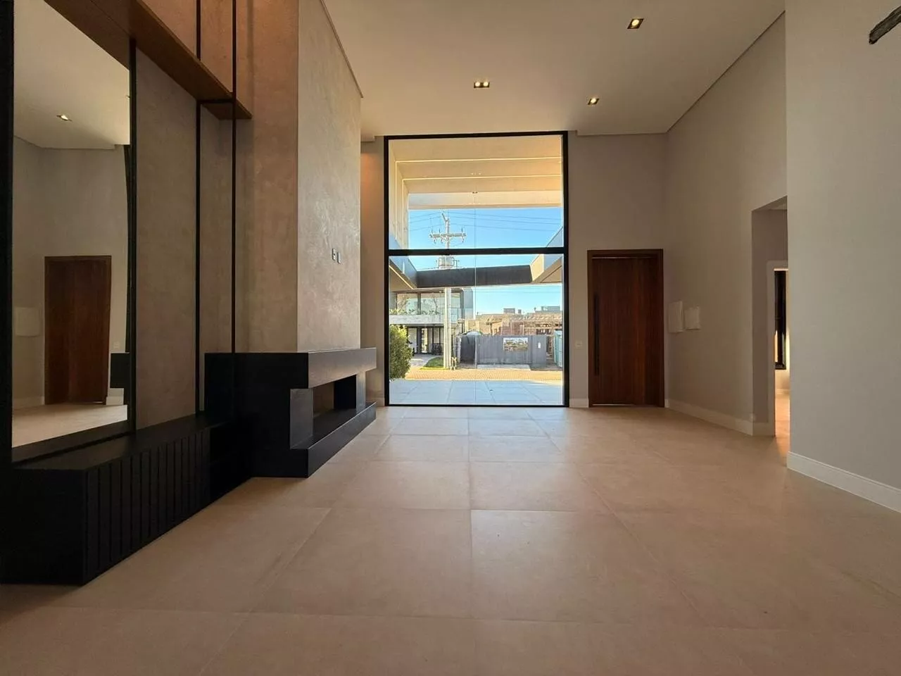 Casa em condomínio, nova, alto padrão de construção, medindo 20000000m², com 03 dormitórios, sendo 01 suíte, e 02 suítes americanas, sala de estar ampla com lareira, sala de jantar, cozinha gourmet, com churrasqueira, lavanderia, lavabo auxiliar, vaga para 02 carros (lado a lado).