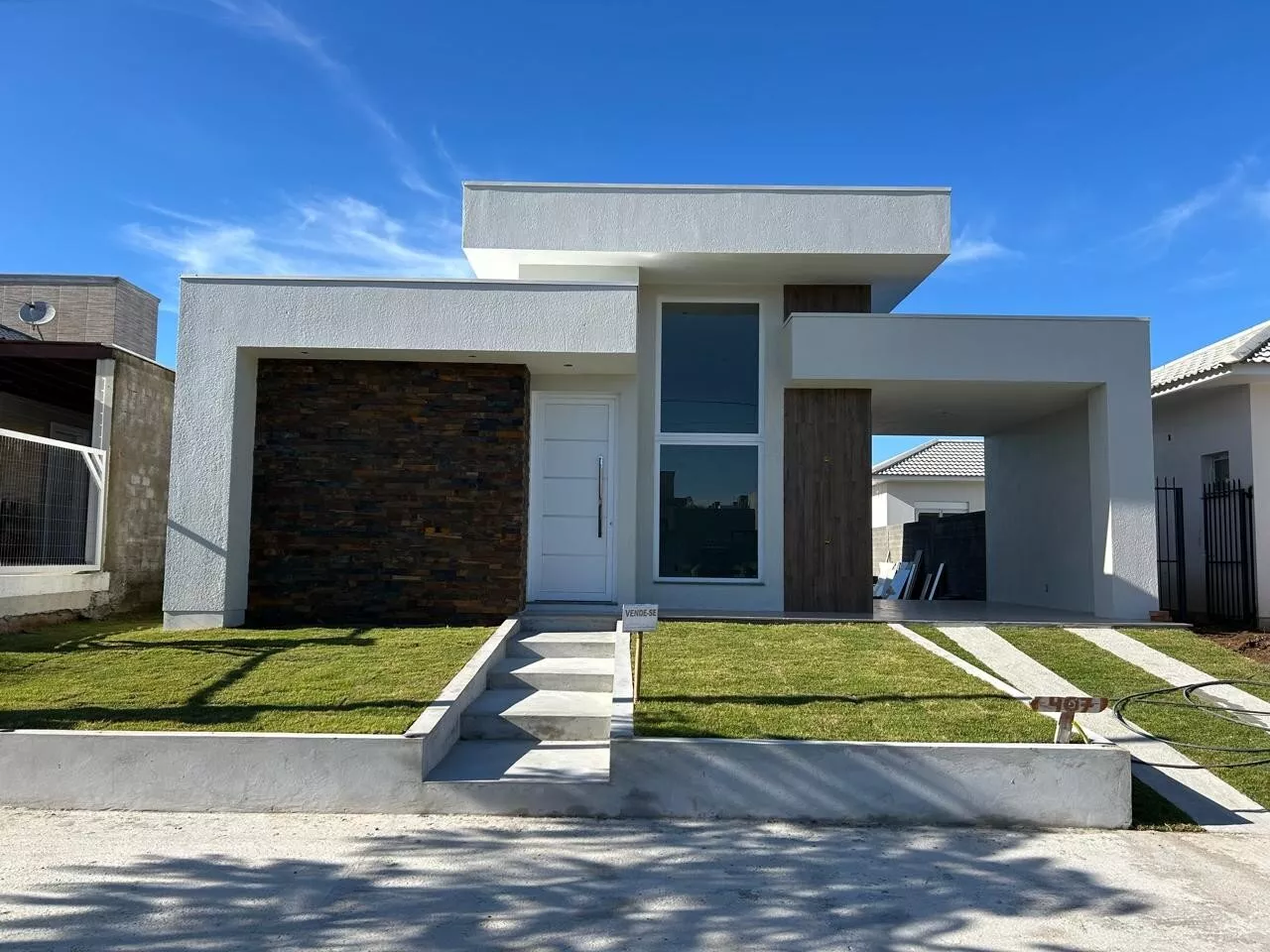 Casa de alvenaria nova, localizada no Bairro São Rafael, com área privativa de 94,00m², com 02 dormitórios, sendo 01 suíte, sala de estar e jantar integradas com pé direito alto, cozinha com churrasqueira, banheiro social, lavanderia interna e garagem para 1 carro. Conta com um excelente pátio nos fundos próprio para instalação de piscina e/ou área gourmet. Piso em porcelanato, aberturas em PVC. Terreno medindo 390,00m² (13x30). O imóvel está em fase de acabamento.