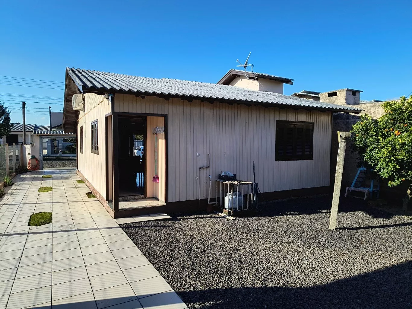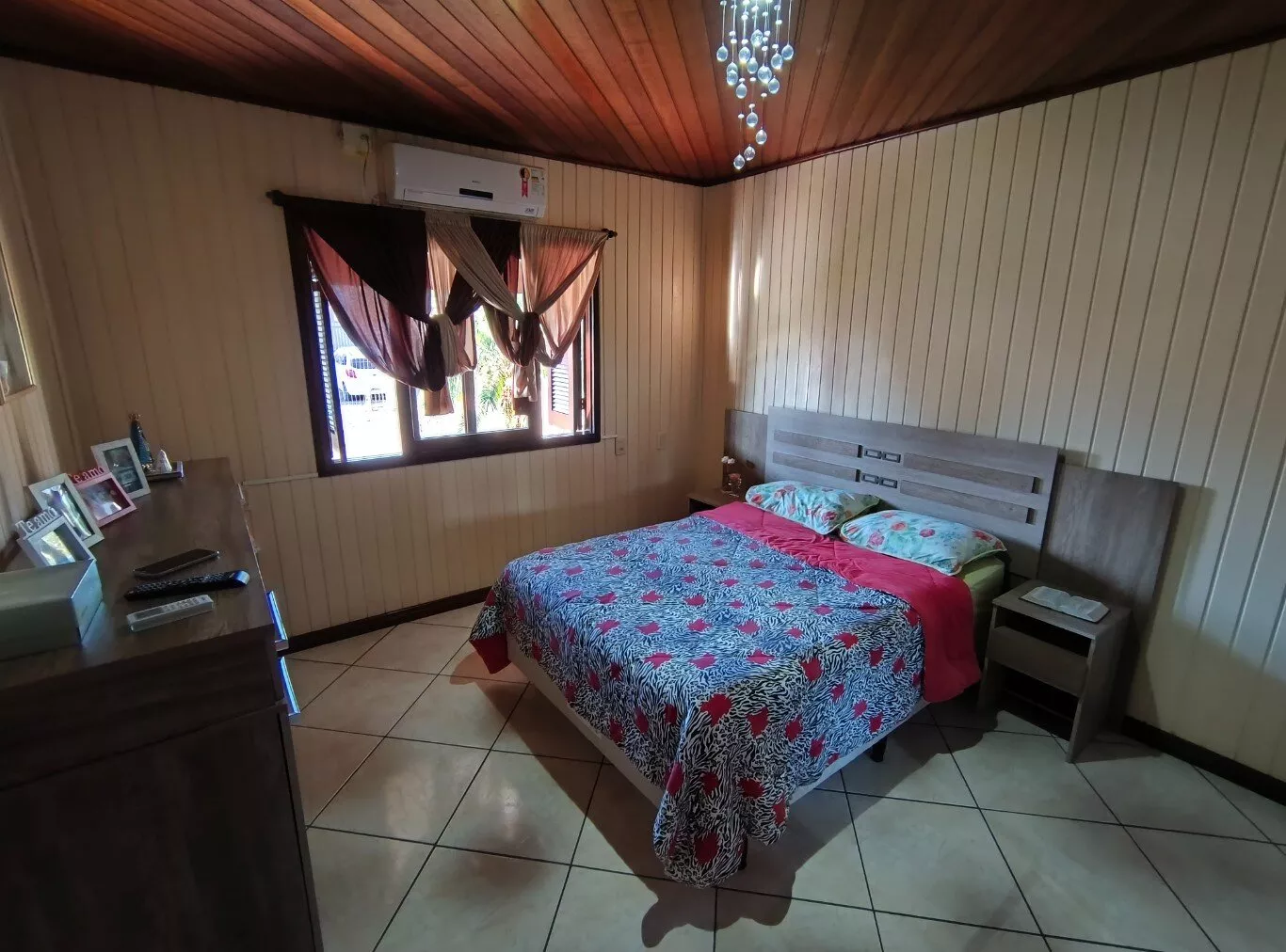 Casa mista, localizada no Loteamento São José, próxima ao ginásio de esportes, medindo 90,00m², com 02 dormitórios amplos, sala de estar, sala de jantar, cozinha, banheiro social e armário embutido. Piso cerâmico. Casa toda duplada, com madeira de cedro. Aberturas em madeira de itaúba. Possui anexo em alvenaria, na parte dos fundos, com garagem para 02 carros e espaço com banheiro, lavanderia e churrasqueira. Terreno medindo 360,00m² (12,00 x 30,00) todo cercado.
