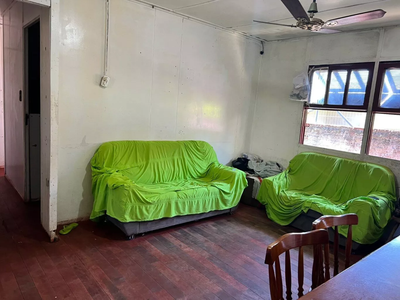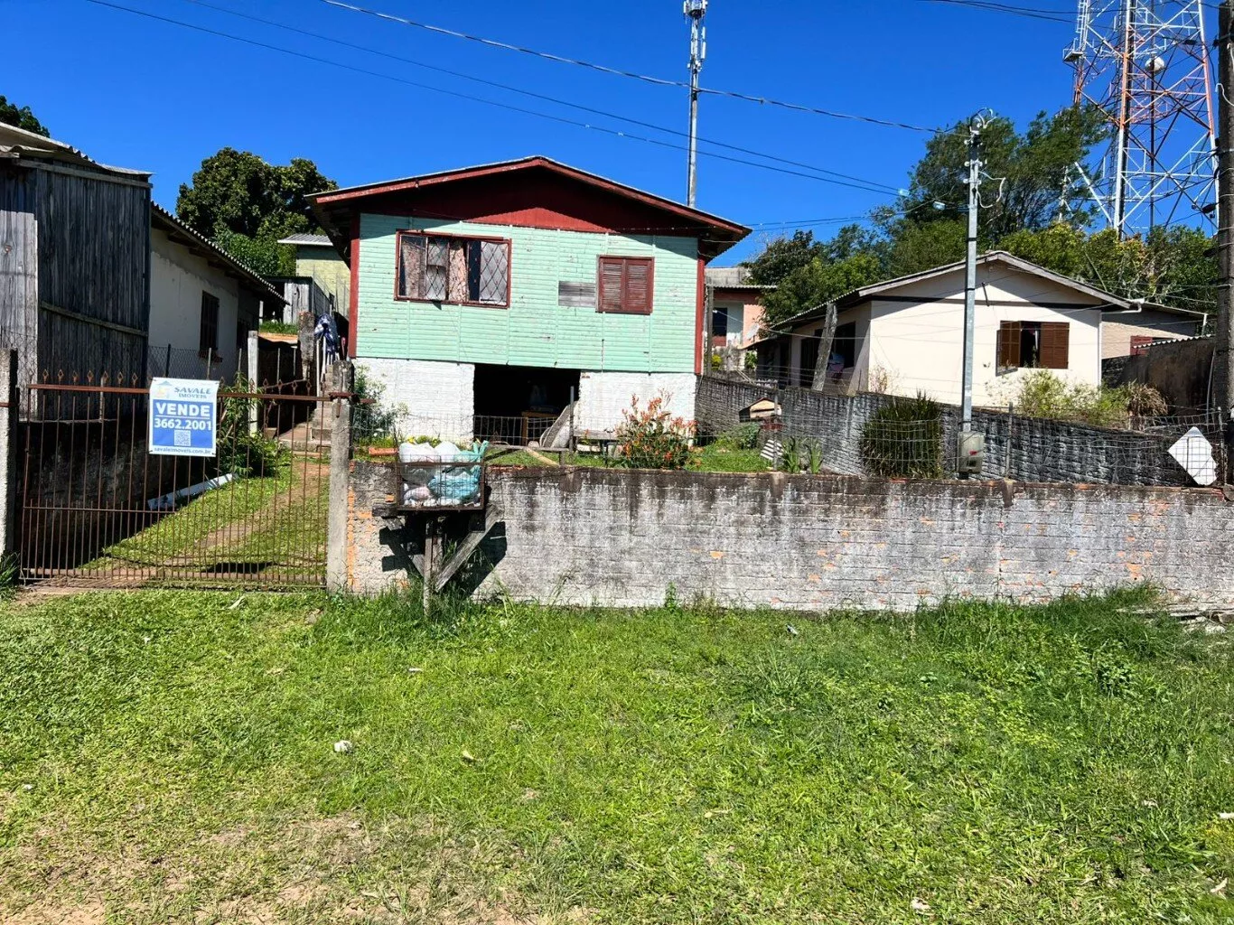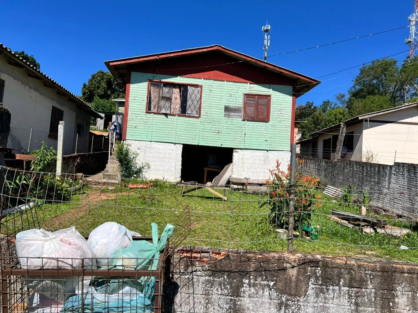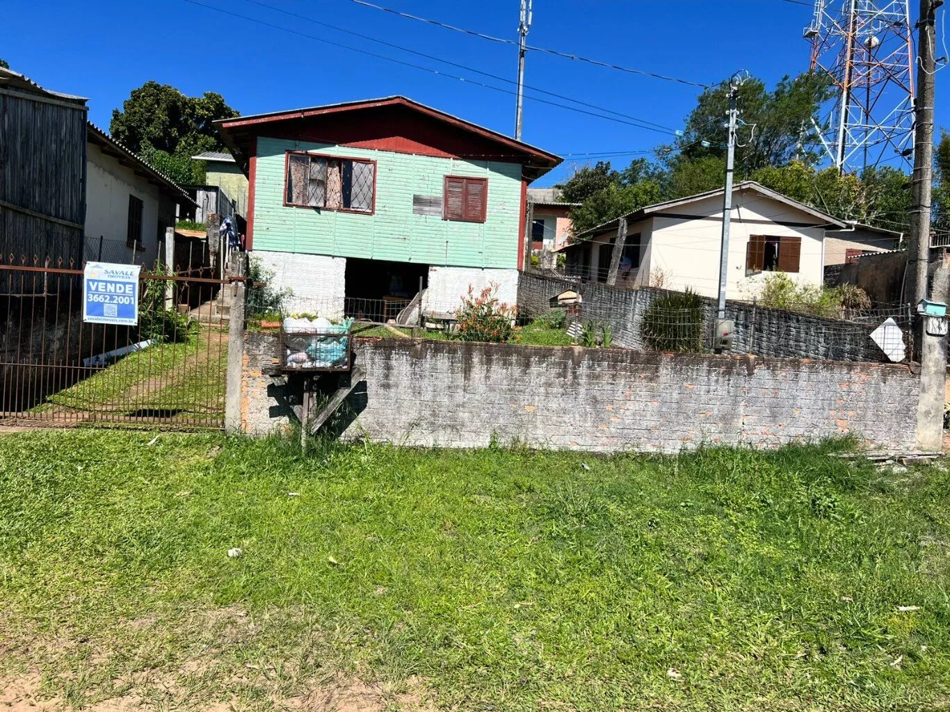Possui casa de madeira com 03 dormitórios, 01 banheiro, área de serviço, sala, cozinha e um porão de alvenaria.