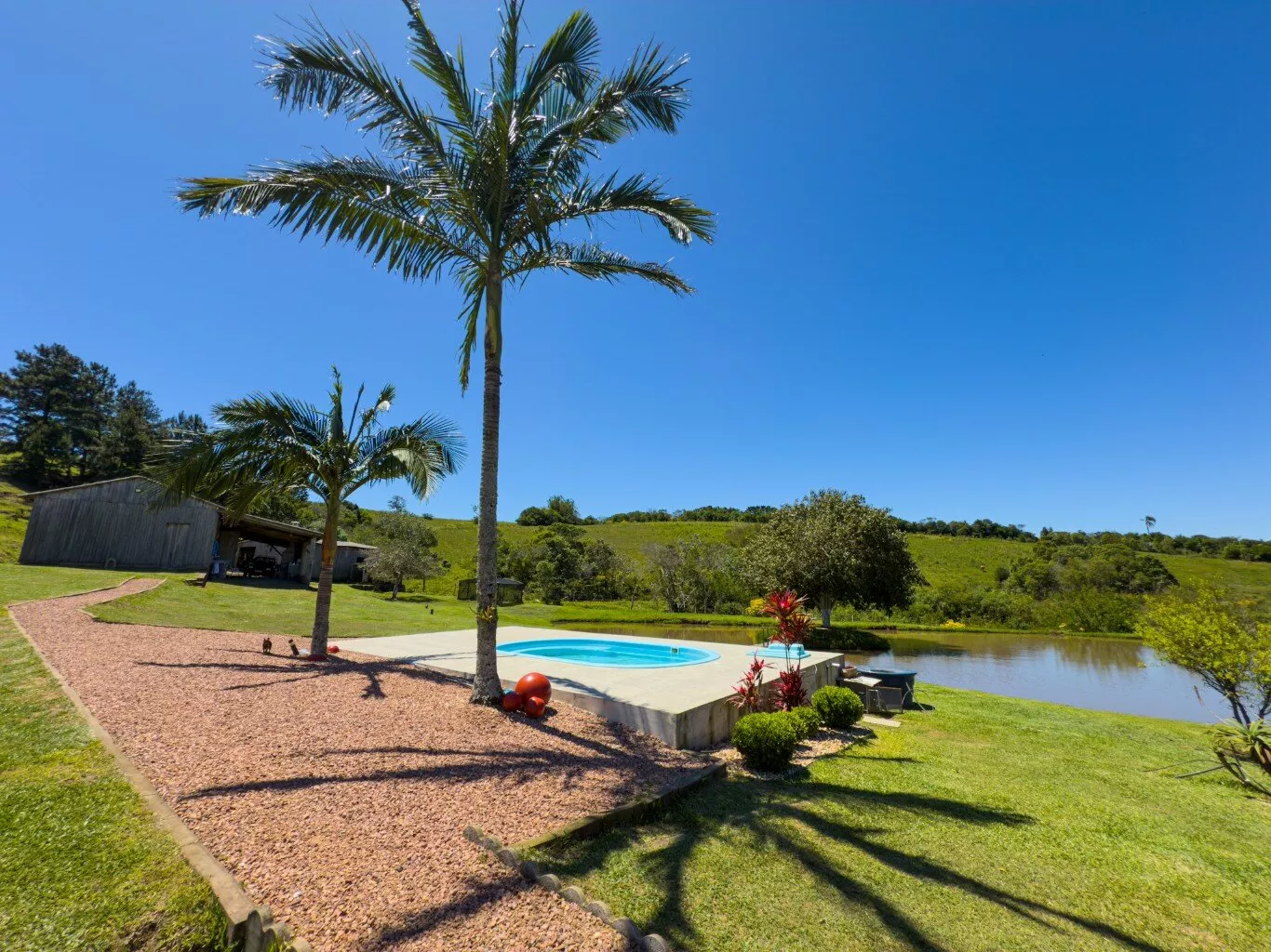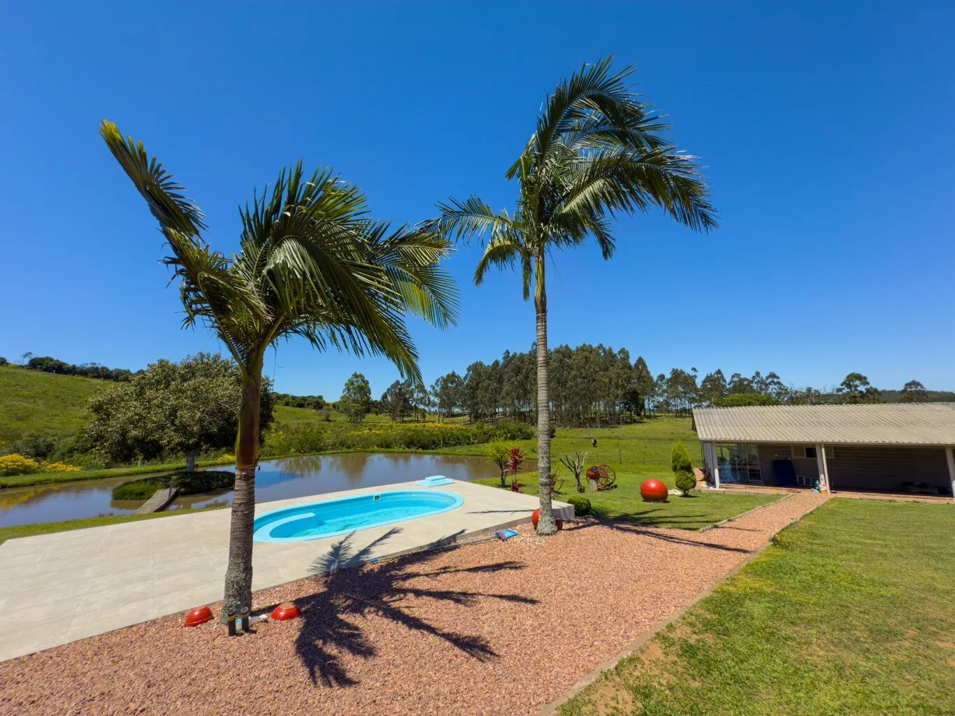 Excelente sítio, com área de 39.000,00m² (3,9ha), com casa mista medindo 110,00m², com 02 dormitórios, sala de estar/jantar, cozinha e banheiro social; galpão campeiro medindo 100,00m², com 01 dormitórios, sala, cozinha e banheiro, fogão campeiro, churrasqueira e garagem; Galpão para o gado medindo 75,00m², com cocheiras e galinheiro; Jardim totalmente gramado; Possui piscina, lindo açude e diversas árvores frutíferas; Local reservado e próprio para quem procura descanso em meio à natureza.
