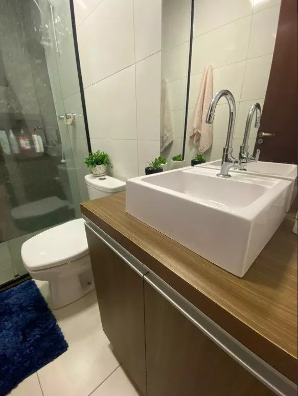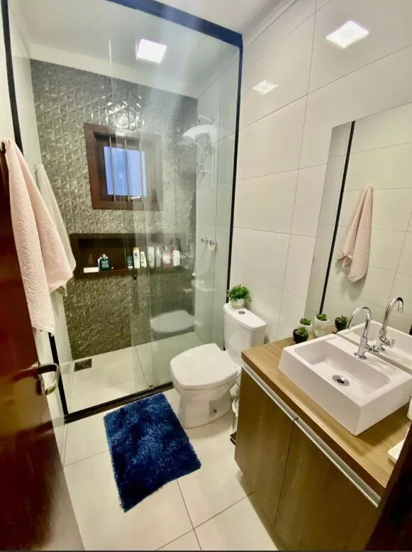 Piso em porcelanato, acabamento em gesso, detalhes com led;