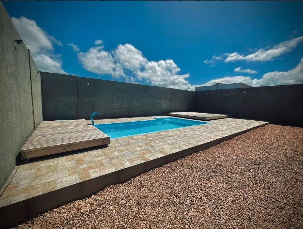 Com 02 dormitórios sendo 01 suíte, sala de estar, jantar e cozinha, banheiro social, lavanderia e churrasqueira;