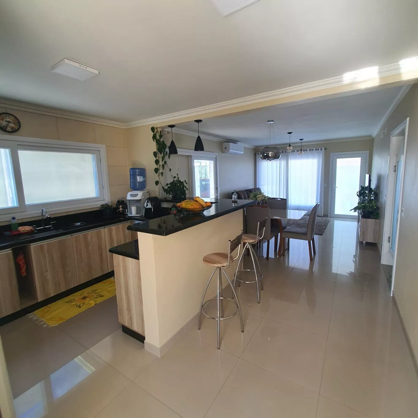 Possui 02 dormitórios, sala de estar, sala de jantar, cozinha ampla com móveis sob medida, banheiro social, churrasqueira, área de serviço e garagem;