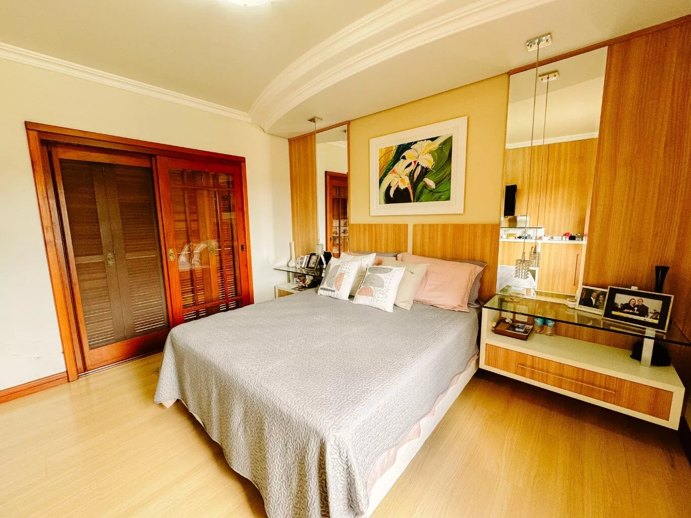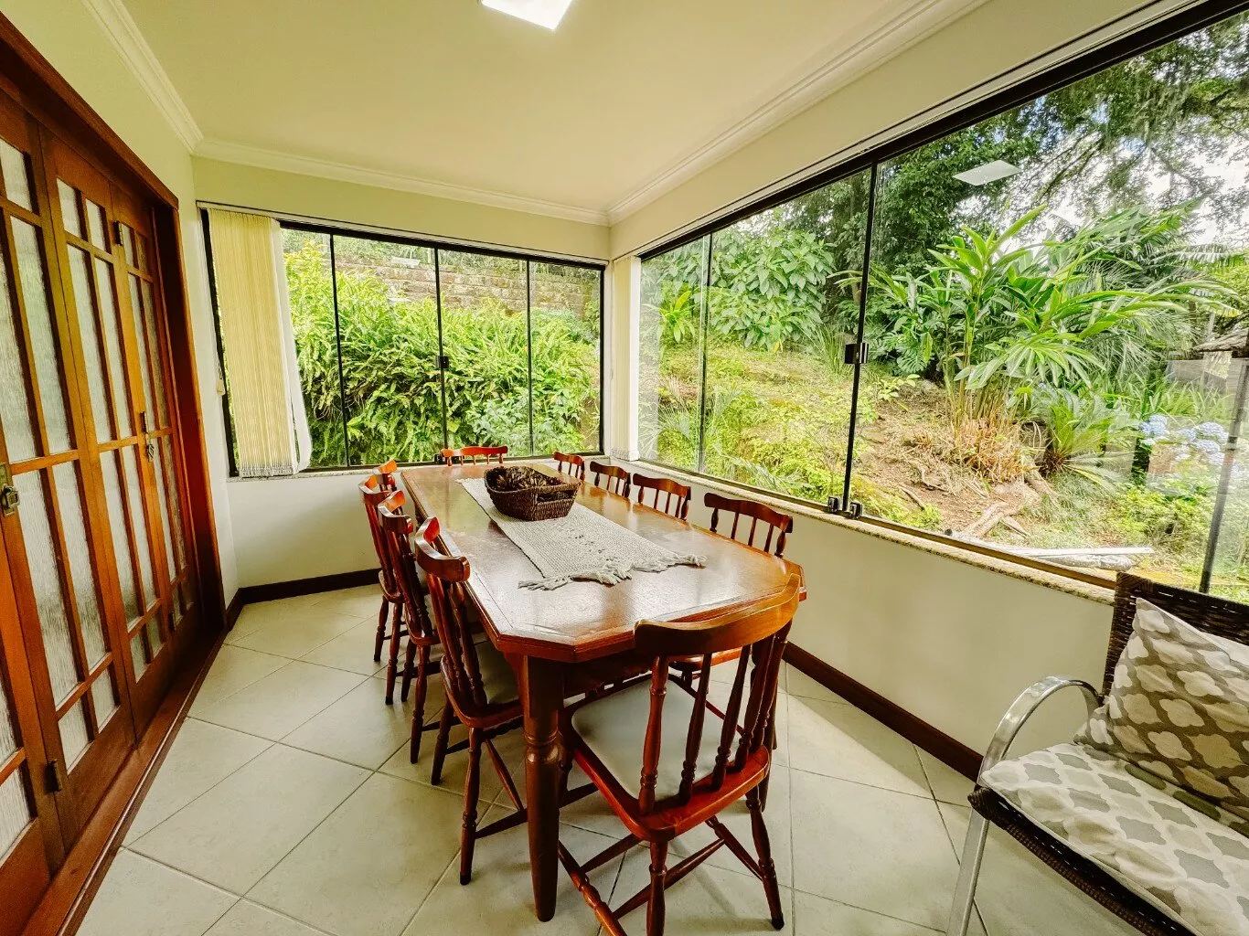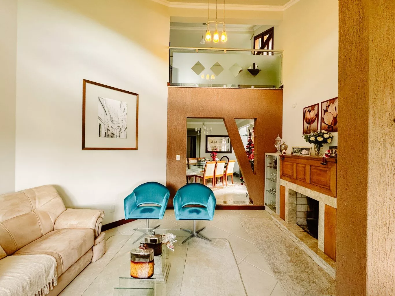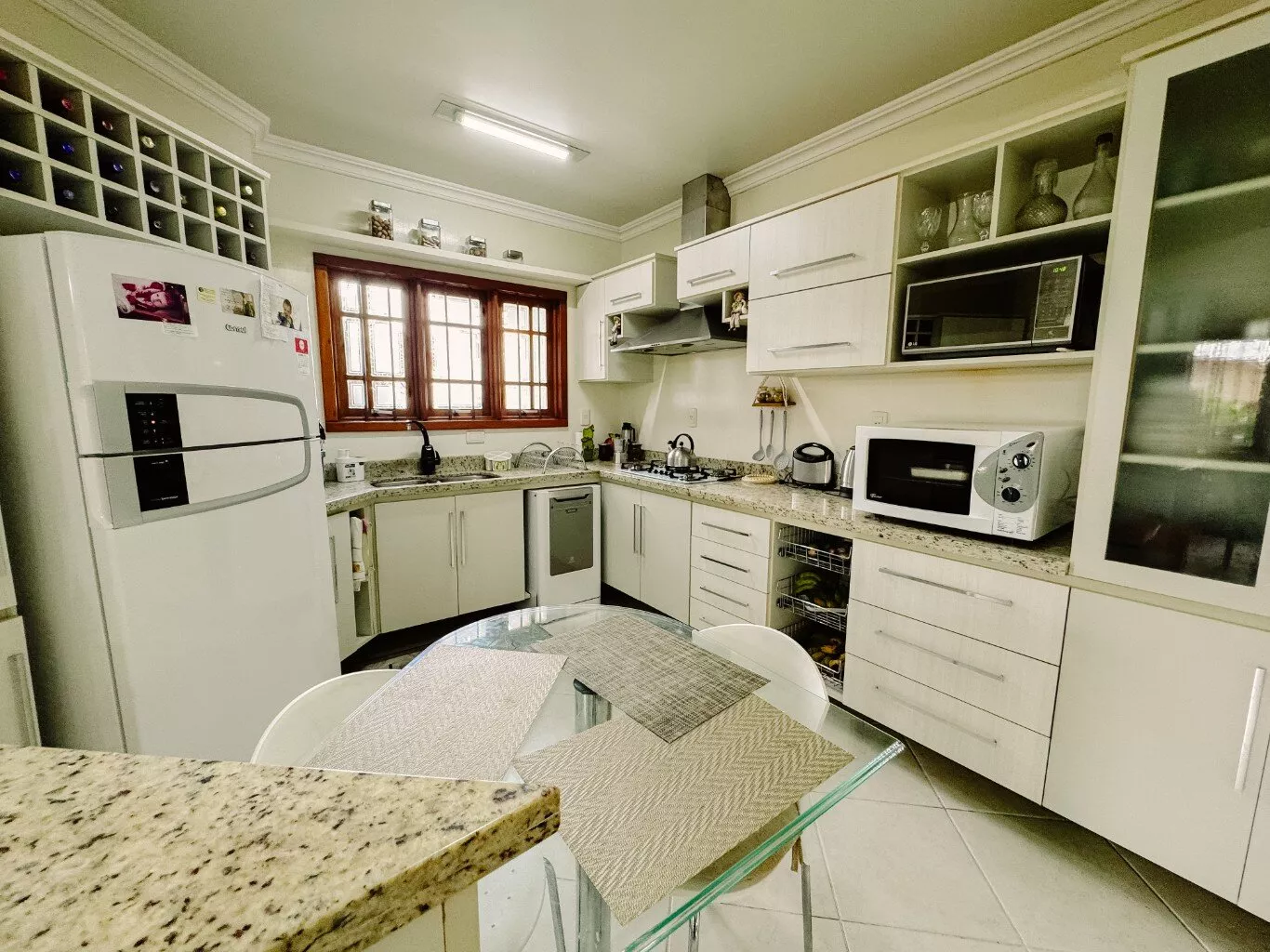 Com 04 dormitórios, sendo 01 suíte com closet e banheira de hidromassagem, banheiro social, lavabo, sala com lareira, sala de TV, sala de jantar, cozinha com copa, despensa, garagem para 02 carros, espaço gourmet com churrasqueira;