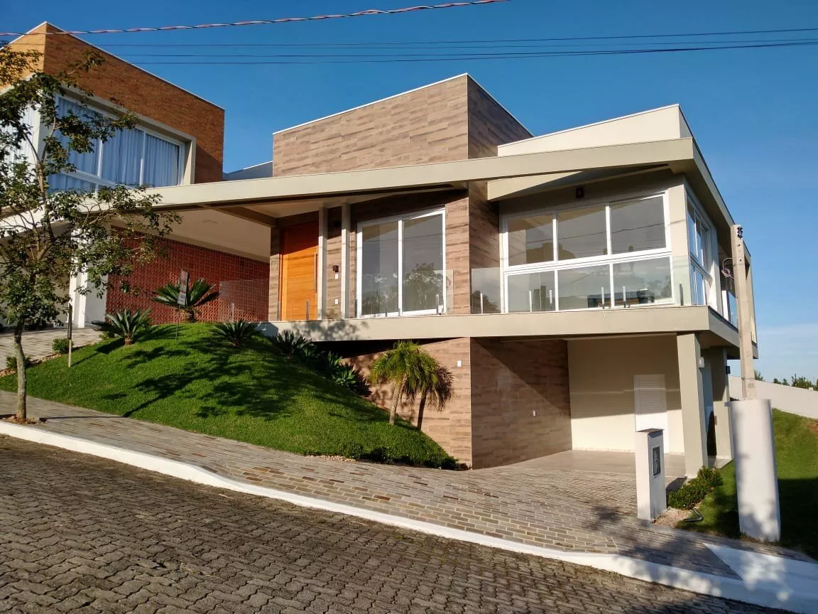 Com 03 dormitórios sendo 01 suíte, sala de estar ampla com lareira e vista panorâmica, banheiro social, lavabo, cozinha ampla com churrasqueira, área de serviço e garagem para 02 carros;