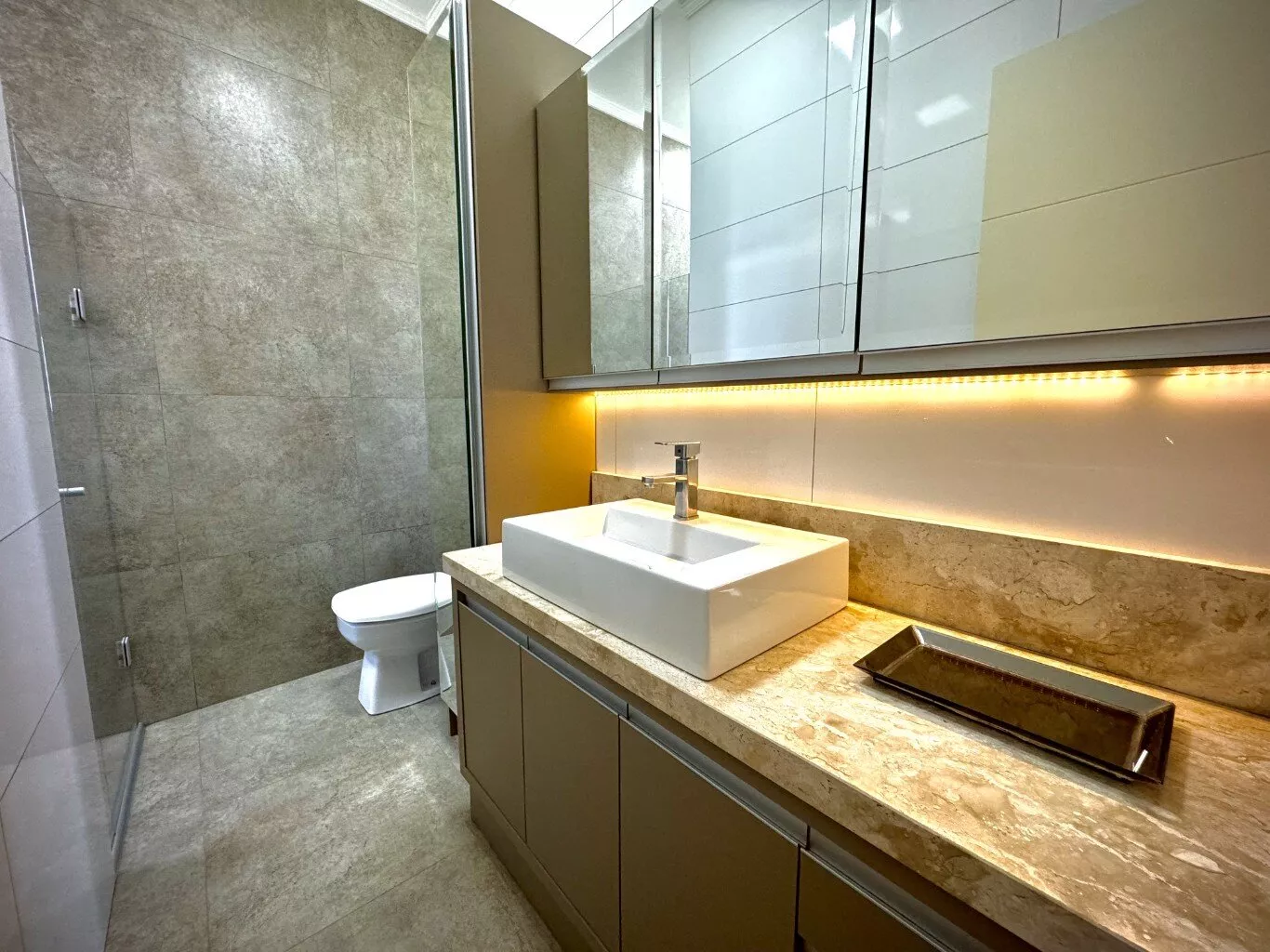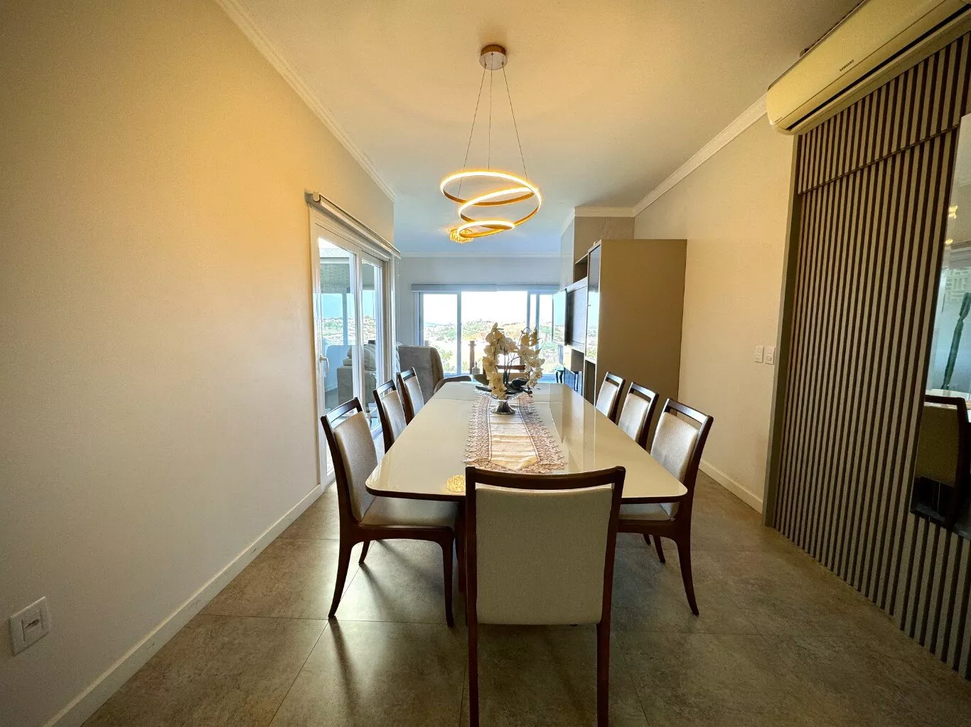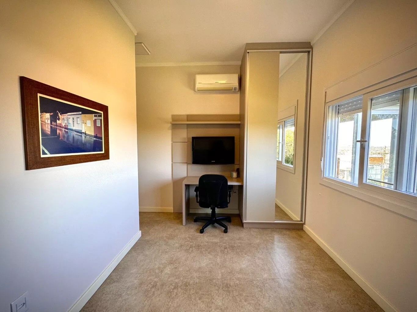Aberturas em PVC, ar condicionados nos dormitórios e na sala de estar;
